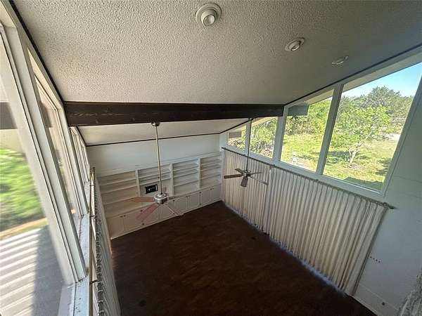 This two-story home with great curb appeal home is located in the well-established Chaparral Estates neighborhood that overlooks the charming community of Goldthwaite. The home sits on an expansive corner lot consisting of 1.82 acres with great tree cover and abundant wildlife. The centerpiece of the home is a large living room with a two-story vaulted ceiling, a two-story fireplace, built-in shelves, floor to ceiling windows that bring the outdoors in and sliding glass doors that open to two patios. The first floor also has a kitchen, large dining room, ensuite bedroom with a bathroom and walk-in closet, a guest bathroom, a sunroom that opens to a covered patio, a large utility room with a sink and refrigerator, a mechanical room and a two car garage also with floor to ceiling windows. Upstairs there is a bonus room with a rock fireplace and overlooks the living room, two additional bedrooms and a bathroom. Though the home is great for entertaining, you will spend time outside on the many outdoor patios entertaining and enjoying the wildlife. It is also important to mention the home has recent upgrades including new wood floors, a new master shower, and new vinyl windows in most rooms. All appliances convey including a refrigerator in kitchen and the washer, dryer and refrigerator in the utility room. Home has City water and electricity, gas, an aerobic septic and high speed Internet.