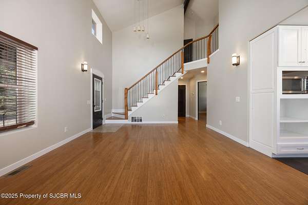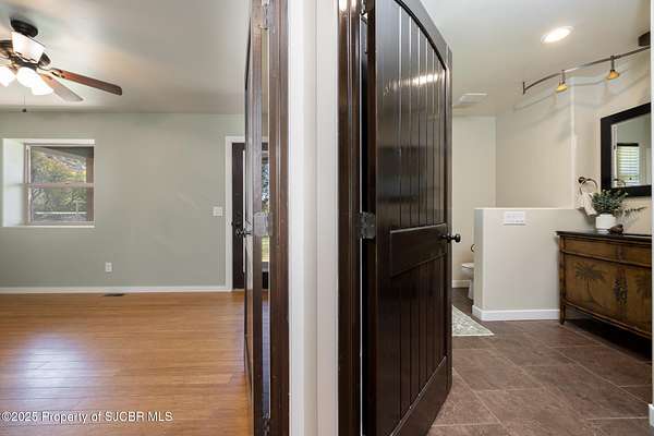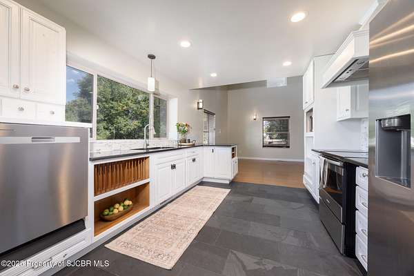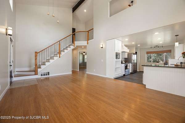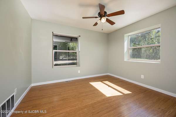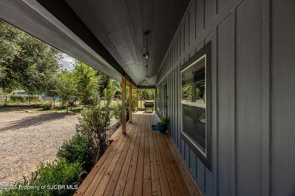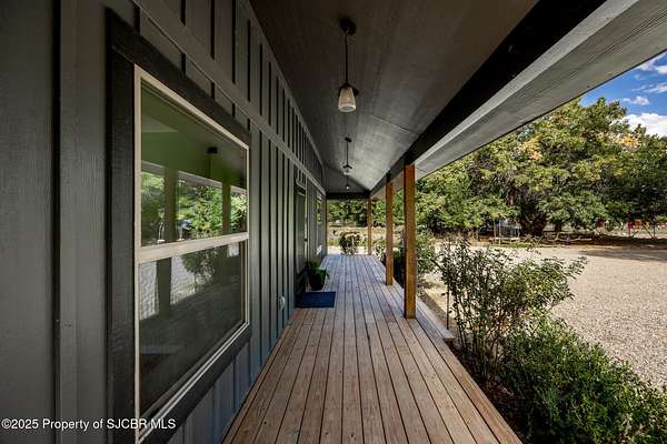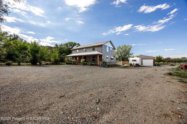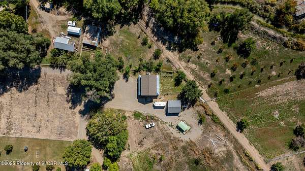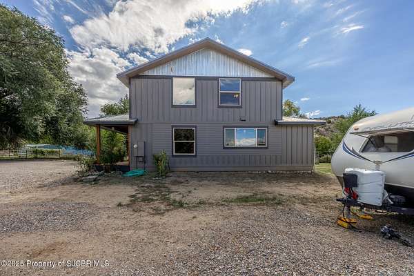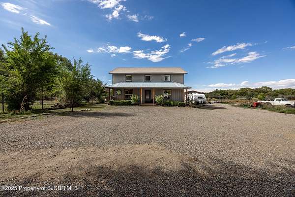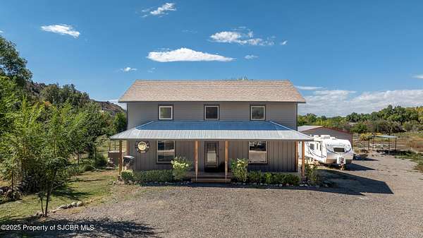 Here's your chance to have the Animas River right in your backyard! This unique property, located just north of Aztec, offers the serenity of river access while being a short drive from Durango, Colorado, and close to the amenities of Farmington, New Mexico.Step inside this beautifully remodeled four-bedroom, two-bathroom home, featuring vaulted ceilings in the main living area, a gourmet kitchen with granite countertops, slate tile, and elegant bamboo flooring throughout. The thoughtful layout includes a spacious primary bedroom upstairs suite and a versatile flex room that can serve as a fourth non-conforming bedroom. Two additional bedrooms are conveniently located downstairs, with an option for a stackable washer and dryer in the guest bathroom.Recent upgrades include a new refrigerated air central system installed within the last twelve months and a tankless Rheem water heater for endless hot water. The property features a crawlspace with a vapor barrier and a private water well equipped with a full carbon filtration system, ensuring ample water for your off-grid living dreams.Spanning 14.64 acres bordering the Animas River, the possibilities are limitless. Imagine cultivating your own garden, greenhouse, or pasture with up to 8 acres of irrigated water rights. There are three head gates around the property for easy water access. While the home operates on propane, natural gas is available nearby. This property includes a metal building with two bay doors, ideal for use as a garage for covered parking or storage. With the addition of electricity it can easily be converted into a workshop.Don't miss the opportunity to turn this dream property into your reality!