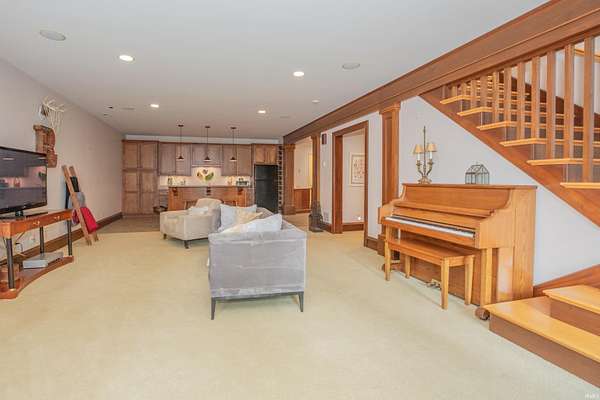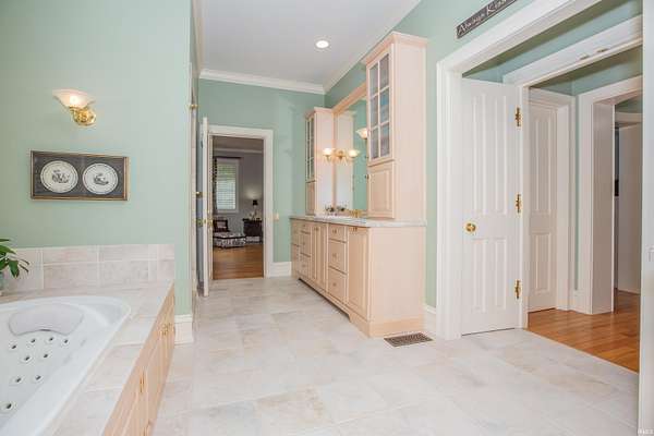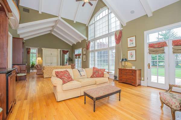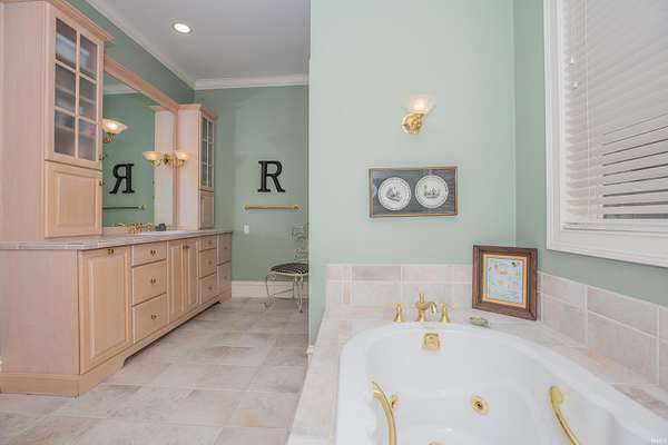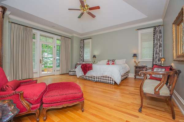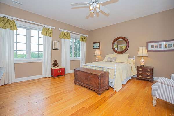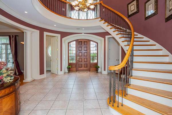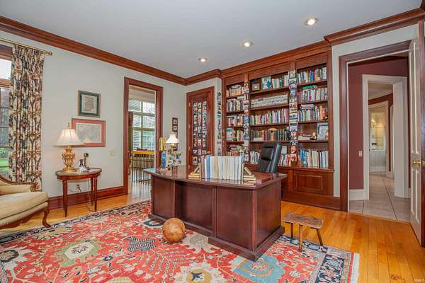Welcome to a rare opportunity to own one of Jasper's most distinguished homes--a timeless luxury residence masterfully designed by renowned Chicago architect Brian Kidd. Tucked away at the end of a quiet cul-de-sac on 2.419 beautifully landscaped acres, this architecturally significant estate combines enduring craftsmanship with modern sophistication across three expansive levels. As you approach the home, you're greeted by a stately facade and a handcrafted solid mahogany front door, opening into a breathtaking two-story foyer crowned by a skylight and anchored by a sweeping, curved staircase. The majestic great room features soaring 22-foot ceilings and is flooded with natural light--an awe-inspiring centerpiece for both intimate gatherings and large-scale entertaining. Throughout the main floor, radiant white oak flooring offers not only beauty but also comfort with radiant floor heating. The kitchen features granite countertops, an abundance of custom cabinetry, a walk-in pantry, separate butler's pantry, and a sun-filled bay window dining area. A formal dining room provides the perfect setting for entertaining guests in style, while a stately study, adorned with solid cherry built-ins and a handcrafted limestone fireplace, offers an inspiring space for work or quiet reflection. Retreat to the expansive main-floor master suite, complete with his and her walk-in closets and a serene atmosphere. Upstairs, you'll find a private bedroom suite with its own full bath, another generously sized bedroom adjacent to a hall bath, and a fully equipped in-law suite, complete with its own kitchen, dining area, living room, bedroom, and full bathroom--perfect for multigenerational living or extended stays. The finished walkout basement is an entertainer's paradise, boasting a recreation room with wet bar, a rounded pool table room, fitness room, an additional large bedroom with en-suite bath, and three generous storage rooms. The bathrooms, bar area. and pool room also enjoy the warm comfort of radiant heat flooring. Step outside to the walkout patio, which is already plumbed for a hot tub and ready to become your personal outdoor retreat. Additional highlights include four and a half garage spaces, replaced windows throughout (since 2016), four independently zoned HVAC systems, radiant floor heating on the main floor, and 18-inch spaced floor joists for superior structural integrity. This remarkable home offers the perfect blend of grandeur, comfort, and privacy.
