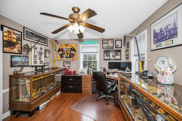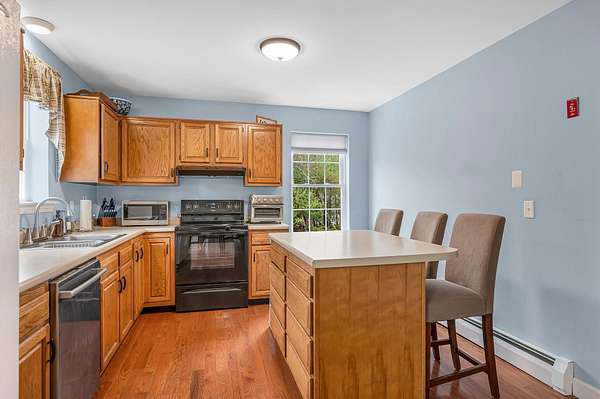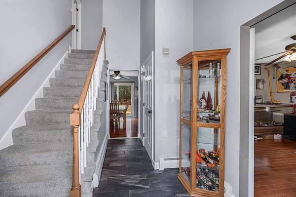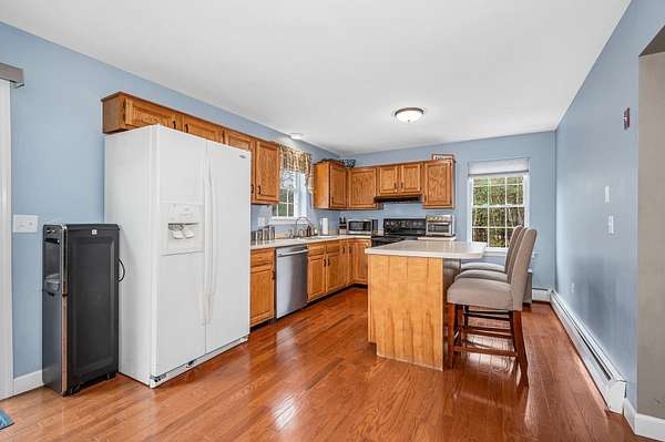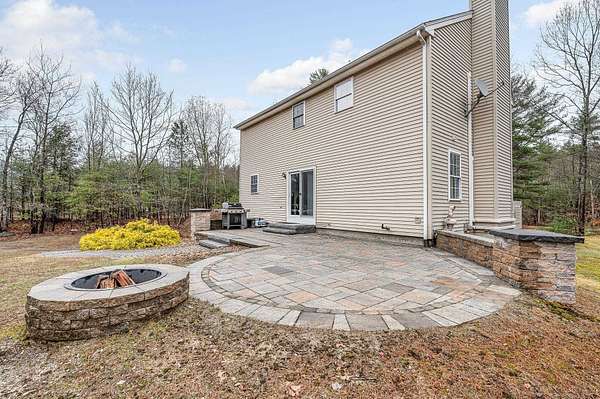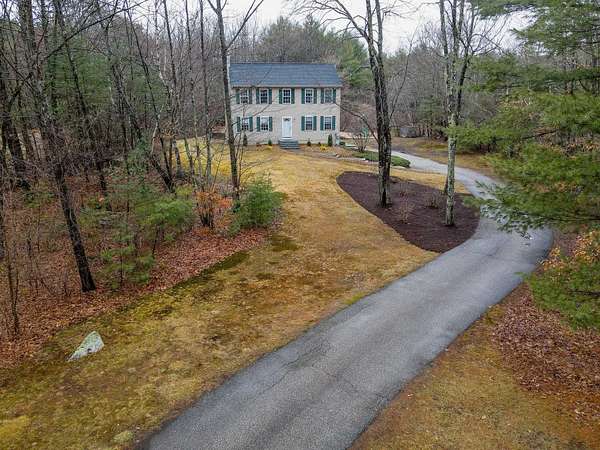 Arguably one of the best locations in Londonderry! Tucked away at the end of a peaceful cul-de-sac, this beautifully maintained Colonial offers both privacy and convenience, set on a spacious backyard perfect for play, entertaining, or simply relaxing. Enjoy unbeatable proximity—less than a minute to Exit 5 off Route 93 and just minutes to Manchester-Boston Regional Airport—while benefiting from a quieter setting without the overhead air traffic found in other parts of town. Inside, you’ll find a warm and inviting living room featuring a cozy wood-burning fireplace. The eat-in kitchen provides ample seating for everyday living, while the adjoining dining room—currently used as a home office—offers flexibility to suit your needs. Newer tile flooring at the entry transitions seamlessly into gleaming hardwood floors throughout the main level. Step outside to your stone paver patio, complete with a fire pit—perfect for evening gatherings under the stars. Surrounded by a wooded backdrop, you’ll love the peaceful, natural setting. Located in a highly desirable community known for its excellent school system, robust sports programs, and the beloved Mack’s Apples just minutes away, this home also offers easy access to shopping, dining, and nearby Manchester. A rare combination of location, comfort, and lifestyle—this is a home to enjoy for years to come. Don’t miss it!