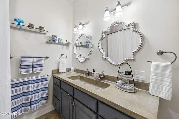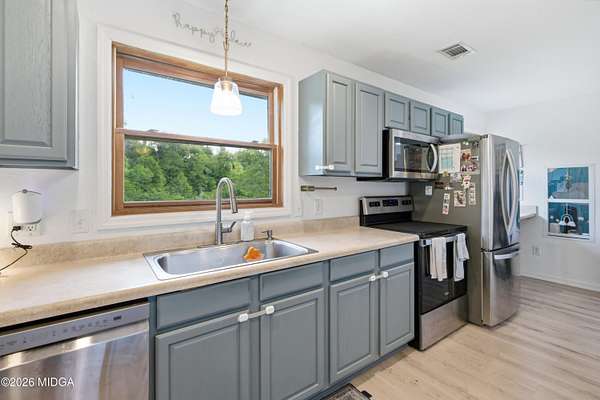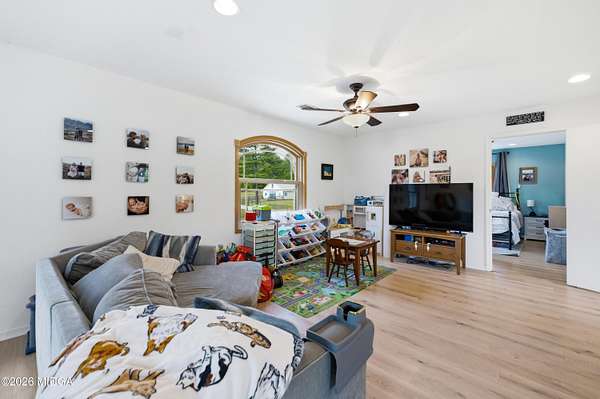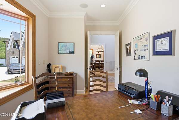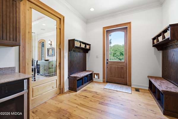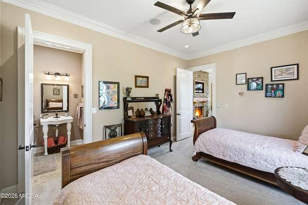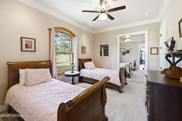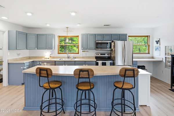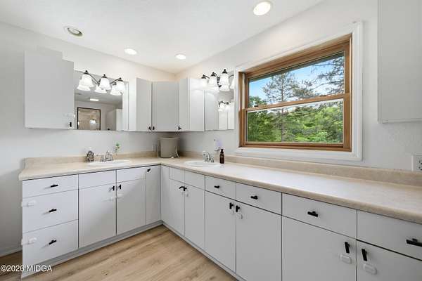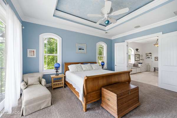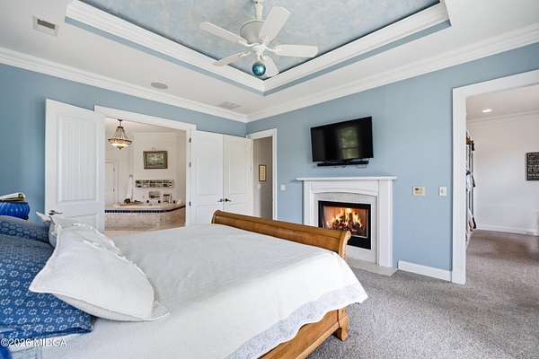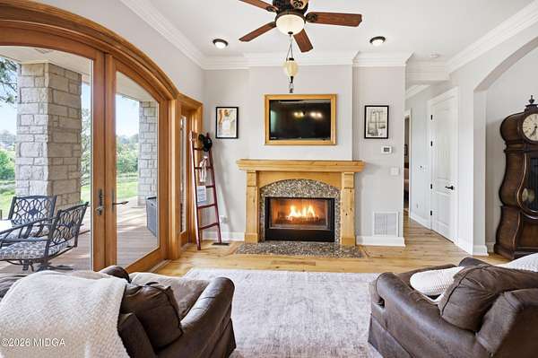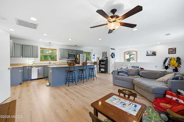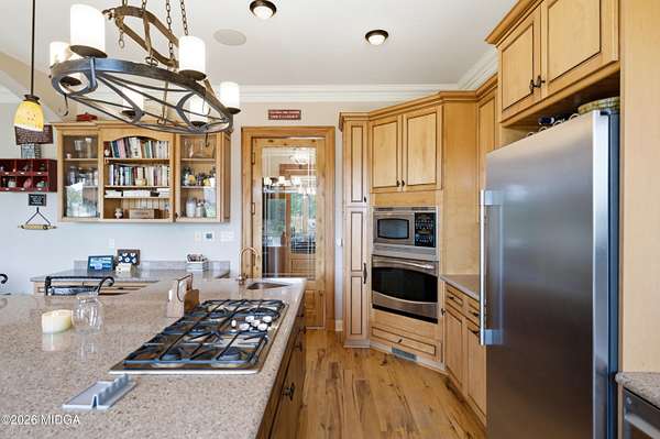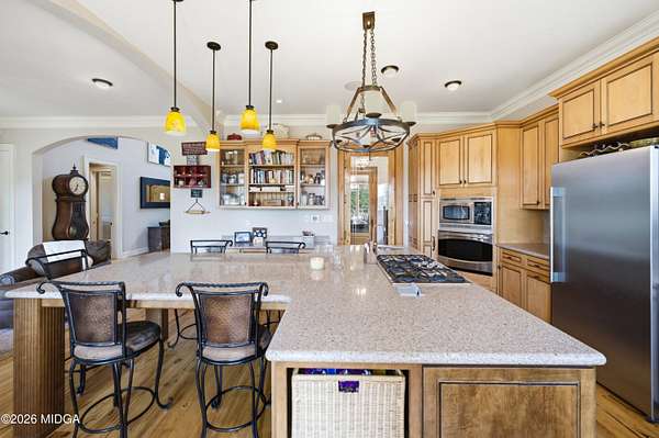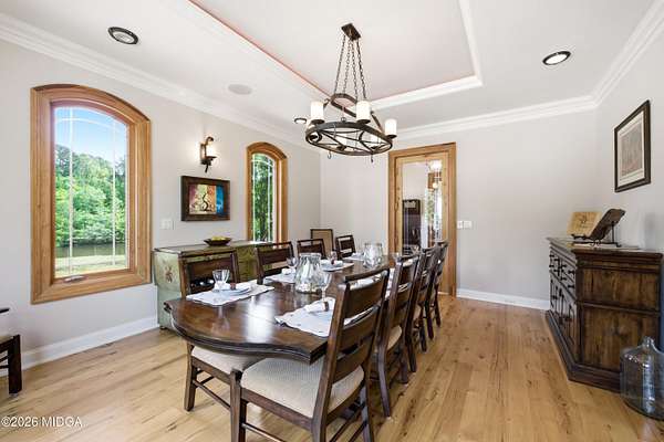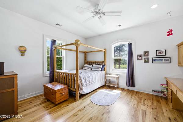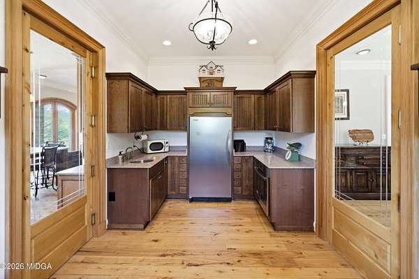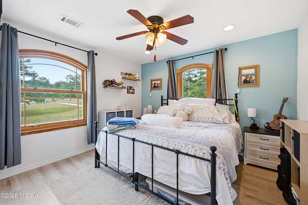 This custom craftsman-built home truly has everything you could possibly want, offering stunning lake frontage on Lake Irene and a level of quality and detail that is hard to find. From the moment you arrive, you'll notice the beautiful alder front doors and inviting front porch. Step inside to a grand 24-foot foyer ceiling that makes an immediate statement along with real pine hardwood floors. The main level features a dedicated office, along with casement windows throughout the home that allow for fresh air and beautiful views of the spacious yard and lake. Designed for both everyday living and entertaining, the home includes a zoned stereo system throughout--perfect for game nights and gatherings. The custom kitchen is a standout, featuring maple wood cabinets, a large island, a butler's pantry with a bar sink, and plenty of storage. The layout flows seamlessly into the living spaces, highlighted by a double-sided fireplace shared between the living room and den, as well as a large dining room. The oversized primary suite offers its own private balcony overlooking the lake, creating a peaceful retreat. It also features a grand walk-in closet and a spacious bathroom complete with a soaking tub and a beautifully tiled shower. Additional bedrooms include built-in desks, and there is ample attic space for extra storage. The basement is a fully poured concrete basement and includes a home movie theater, adding even more space for relaxation and entertainment. The home is also equipped with Marvin Andersen doors and windows throughout, all with a warranty, along with a central vacuum system for added convenience. Step outside to enjoy a Trex deck overlooking the lake, perfect for taking in the views. The home is topped with 50-year guaranteed EcoStar shingles, and every upgrade you could imagine has been thoughtfully included. This is not a property you could easily replicate--with the lake frontage, space, upgrades, and level of custom craftsmanship, it truly stands apart. In addition to the main home, the detached garage features a fully finished apartment above, perfect for guests, a mother-in-law suite, or older children. For those needing even more functionality, the barn is fully equipped for horses and includes a paddock, making this property ideal for equestrian use as well. Everything you could imagine is here--this house truly has it all.