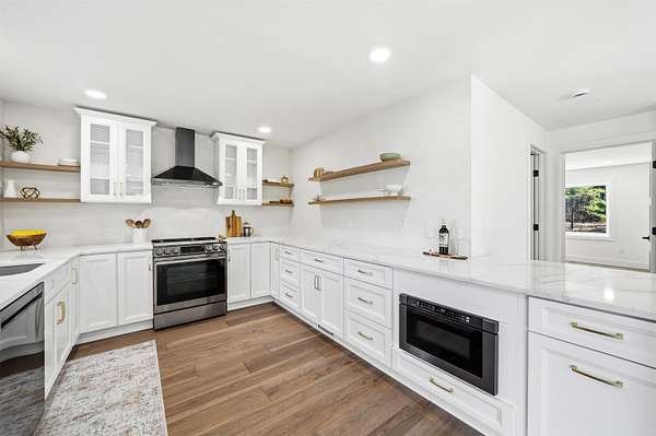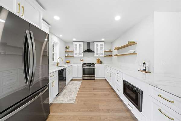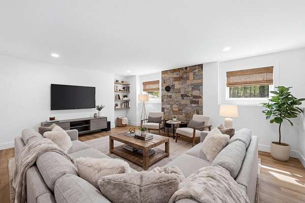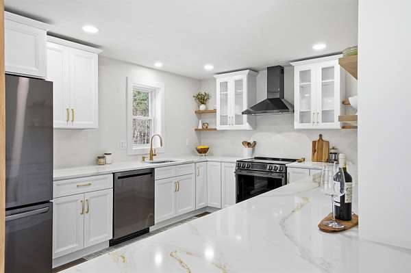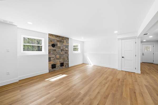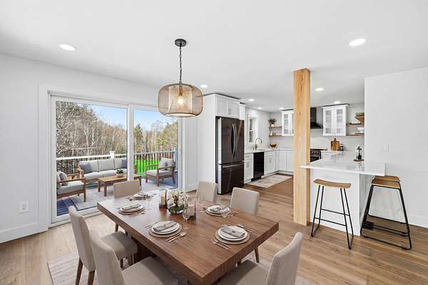 Introducing an exceptional, fully reimagined property set on 8.25 private acres at the end of a quiet cul-de-sac in highly desirable Windham, NH. This turnkey residence has been meticulously renovated from top to bottom with premium upgrades including new siding, windows, roof, gutters, heating system, central air, garage doors and expansive new decking. Designed for both comfort and sophistication, the home showcases an open layout, sun-drenched living spaces and high end touches. The gourmet kitchen has been beautifully updated with quartz countertops, plenty of counter and cabinet space, a unique Venetian plaster surround, and a fabulous bar area for casual eating and entertaining. Off the kitchen is a lovely sunroom leading out to the massive wrap around composite deck. Enjoy the views and sunsets from the deck overlooking the wooded back yard. The bathrooms feature elegant marble tile showers, quartz countertops, matte gold fixtures and clear glass shower doors. The master bedroom has its own private balcony overlooking the expansive backyard...a perfect retreat to relax and unwind. Each bedroom is spacious, light and bright with hardwood flooring. Multiple bonus rooms in this house include a finished attic, which could be an additional bedroom, office, movie room, play room...so many possibilities. The finished basement provides additional flex space and access to the back yard with walkout and daylight windows. Adding exceptional versatility, the detached garage presents a rare opportunity, as it exists currently as a workshop and massive oversized garage or for a potential future detached ADU, guest quarters or private workspace (water/septic in place). Surrounded by natural wooded beauty and privacy, this thoughtfully upgraded property delivers a perfect blend of luxury, acreage and modern convenience - just minutes from area amenities, and commuter routes. This unique property is truly one of a kind and not to be missed! Open houses this coming weekend!