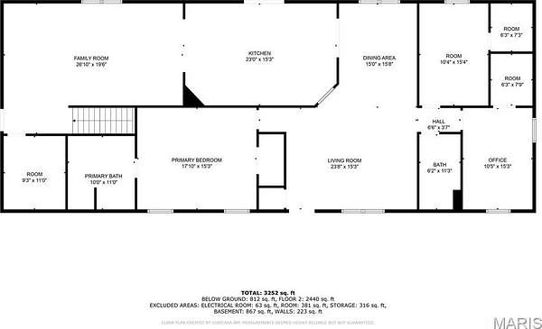 - Basement, Bathroom x 3, Bedroom x 3, Bonus Room, Dining Room, Family Room, Kitchen, Living Room