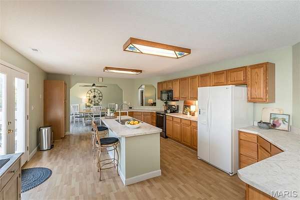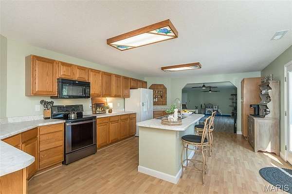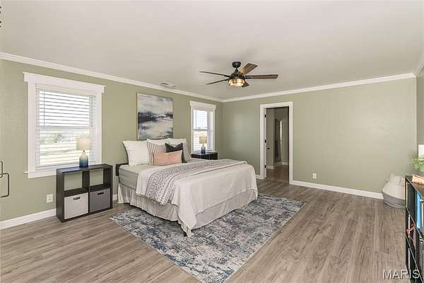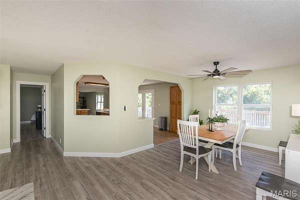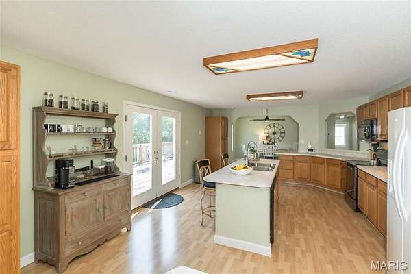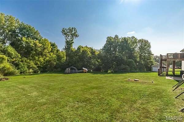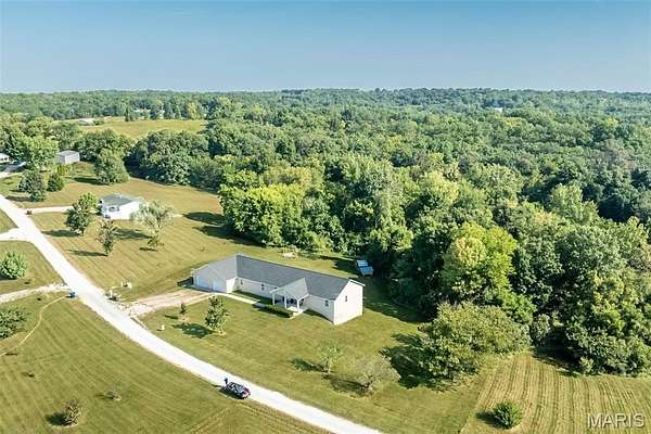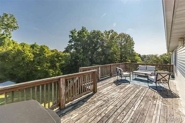 Privacy Awaits! This 5,000+ sf home is perfectly positioned on 5 acres, offering a peaceful country setting with all the space you've been craving, inside and out! From morning coffee with sunrise views to evenings watching the sunset from your expansive deck, this home is made for those who love room to relax and entertain. Inside, a light-filled, open floor plan welcomes you with updated laminate flooring, fresh baseboards, and crown molding for a polished look. The heart of the home is a sprawling kitchen with endless cabinetry, generous counter space, and a center island perfect for gathering. The primary suite is a true retreat, complete with a large whirlpool tub, walk-in shower, and serene views. Two additional bedrooms, full hall bath, and laundry room round out the main level. The walk-out lower level is partially finished and ready for your personal touch--a perfect space for a family fun center, rec room, or additional guest quarters, complete with a full bath already in place. Outdoors, there's plenty of open yard for games, gardening, or simply soaking up the quiet. A matching shed adds storage for all your tools and toys. New roof on home and shed in 2023, whole-house water filtration system and softener 2023. Insulated garage. If you're dreaming of a property where you can spread out, enjoy privacy, and soak in nature's beauty while staying close to everyday conveniences, this home delivers!
