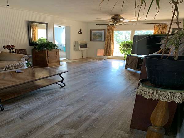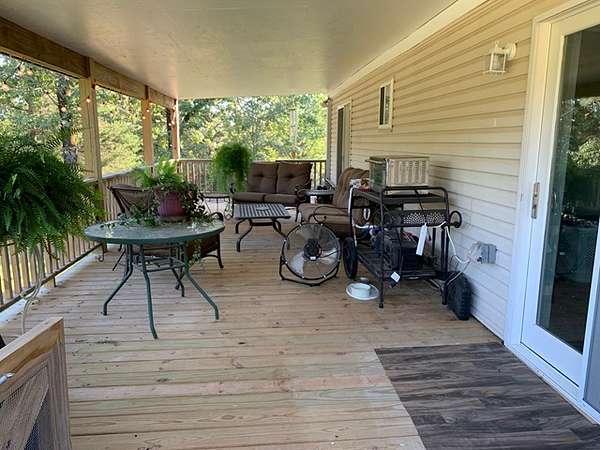 The second home is about 900 sq ft and has two bedrooms and two baths making it a great mother-in-law home or could be used for nightly rentals for Buffalo River visitors. The metal roof is four years old. It has a mini split system for heating and cooling and a large eat-in kitchen with walk in pantry. The bonus room at the back of the house opens to the covered deck. It also has covered