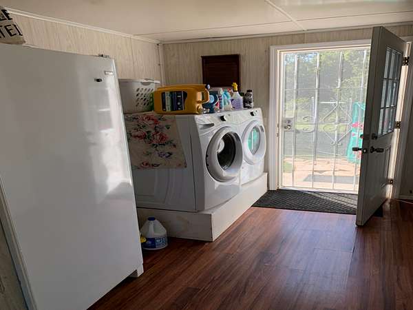 Master bedroom features a cedar lined walk-in closet and attached office space. It has recently flooring. Utility room serves as a mudroom entrance to house and appliances convey with property. Windows to house are double pane flip out vinyl for easy cleaning. Sliding glass doors to 12x26 covered porch are high quality thermal efficient doors.