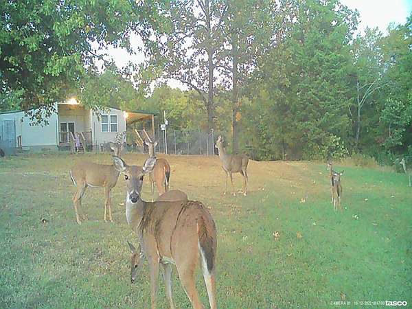 The property has about 3.5 acres of open land around houses and extends down gently rolling ridge top to the south from house. The remainder of land is wooded with mostly native hardwoods like oak and hickory and has a scattering of native pines. It is located less than a mile from the Buffalo National River as a crow flies and a mere 3.5 miles to the park at the old ghost town of Rush if you drive. There is a healthy population of large game for viewing or hunting.