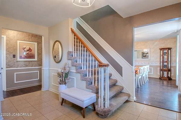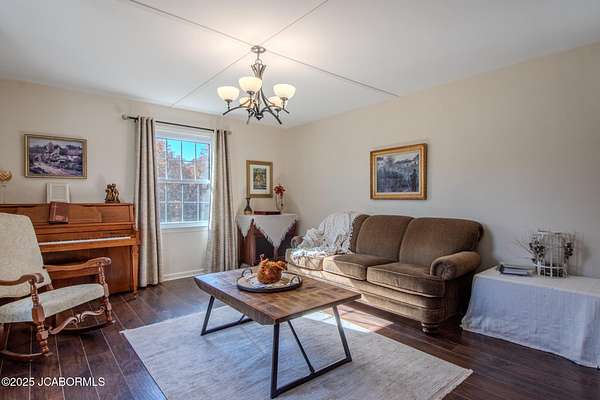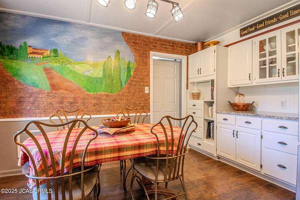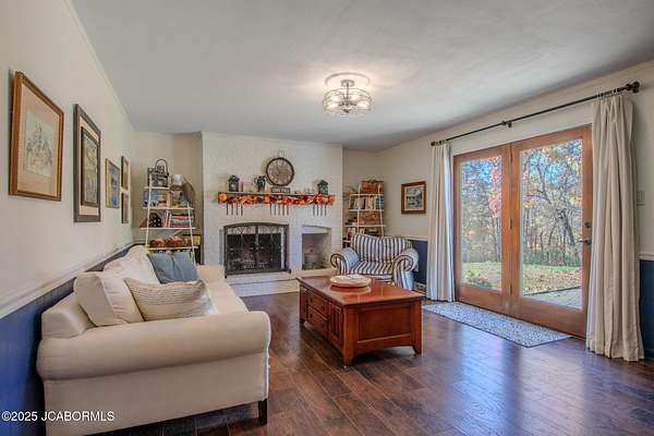 This 5 bed, 2 1/2 bath home with numerous updates is nestled on 6.5 level acres in a quiet subdivision with easy access to neighboring cities. Enter the spacious foyer that flows into the formal dining room. The kitchen features granite countertops, abundant cabinetry, a gas range + electric oven. Enjoy time with friends & family in the living room by the fireplace or step out onto the patio to take in the view. With another room on the main level that could be used as bedroom & 4 bedrooms upstairs, this home has plenty of space! Downstairs boasts a large family room, library with built-in bookcases, & plenty of storage. The wooded acreage has tons of potential while the open areas are perfect for lawn games, gardening, or adding a pool. Rare blend of in-town living with country privacy. This home also features well-water and a new HVAC system that was just installed in Aug 2025.