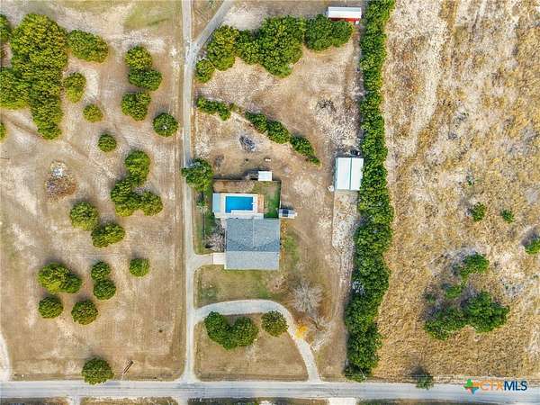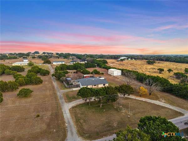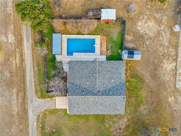 Welcome to this exceptional Texas retreat nestled on 2.037 acres right outside of Copperas Cove! This spacious 3,443 sqft home offers 3 bedrooms and 2.5 bathrooms with no carpet throughout, providing comfort and easy maintenance. The expansive primary suite is a true sanctuary, featuring beautiful wood beams, a generous sitting area, multiple closets and a luxurious en-suite with double vanities and walk in shower. The home is designed for both entertaining and everyday living with a large living room, generous dining area and a spacious flex room ideal for a game room, or additional living space. Outdoors, enjoy your private oasis with an in-ground pool with a diving board and brand-new liner, plus a shaded poolside lounging area perfect for relaxing. The property also includes a 1200 sqft workshop with electricity and an automatic garage door opener, perfect for hobbies, storage, or business use, along with additional storage sheds for tools and equipment. Take in the peaceful setting and beautiful Texas sunsets, offering space, privacy, and incredible amenities. This one-of-a-kind property offers the best of country living with room to enjoy it all.