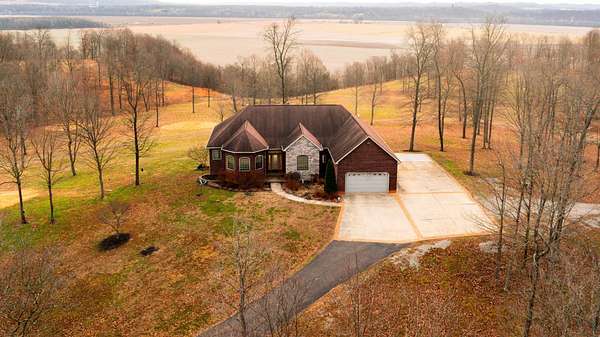 Perched high above Lake White in Waverly, Ohio, this extraordinary estate offers a rare blend of luxury living, total privacy, and breathtaking natural beauty. Encompassing 255 sprawling acres, the property delivers panoramic views, rolling timber, open ground, and an unmatched sense of seclusion-yet remains conveniently close to town. The custom-built raised ranch home spans 5,848 square feet of finished living space, thoughtfully designed for both everyday comfort and large-scale entertaining. The main level features an open-concept layout with soaring ceilings, expansive windows, and warm natural wood finishes throughout. The transitional kitchen showcases solid wood cabinetry, granite countertops, a large center island, high-end appliances, and seamless flow into the dining and living areas-perfect for hosting gatherings while enjoying the surrounding views. The primary living spaces are highlighted by hardwood floors, abundant natural light, and a cozy fireplace that anchors the great room. Three generously sized bedrooms, two and a half well-appointed bathrooms, and flexible living areas provide ample space for family, guests, or multi-generational living. The fully finished basement elevates this home to the next level, offering an impressive custom bar and entertainment area, ideal for hosting friends, game nights, or relaxing after a day outdoors. Additional space in the lower level allows for recreation, fitness, media, or hobby rooms. Outside, the property truly shines. The elevated setting offers commanding views over the surrounding countryside, while the 255 acres of open pasture and gently rolling timber provide endless opportunities for recreation, hunting, hiking, ATV riding, or future land use. A short trip down the hill will land you at Lake White, where you can enjoy boating and your own beach access during the summer months. An attached two car garage, as well as a large 40 x 60 pole barn offers up plenty of storage for vehicles, atvs, tractors, and much more. A long private drive through the beauty of the property enhances the sense of arrival and exclusivity. This is a one-of-a-kind opportunity to own a premier southern Ohio estate-combining acreage, views, and substantial living space into a single remarkable offering. Whether you're seeking a private retreat, recreational paradise, or legacy property, this home delivers on every level.