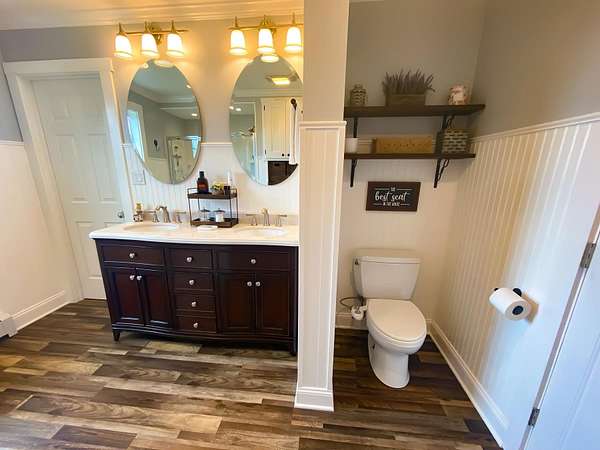 This Vermont Homestead is a charming and move-in-ready colonial home featuring 4 bedrooms and 2 bathrooms. It offers a seamless flow from the entrance, including a bonus room off the mudroom and a first-floor bedroom and bathroom for convenience. The large, open kitchen, dining, and living areas are filled with natural light thanks to all new windows. Upstairs, you'll find an oversized primary bedroom and two additional bedrooms. The barn/garage includes partially finished space on the main floor and an upstairs accessory apartment, which features a beautiful studio with a full kitchen, and 3/4 bathroom (an additional 400sqft finished living space) and a built-in AC unit. Step outside onto the deck to enjoy stunning mountain views. The 15+ acres boast trails and scenic spots along the paths, perfect for exploring. A lighted fire ring/picnic area is a fun surprise, perfect for gathering friends and making memories. The location is close to shopping, schools, and many lakes, including Caspian lake in Greensboro. Don't miss the opportunity to see this exceptional property in person--you'll be glad you did.