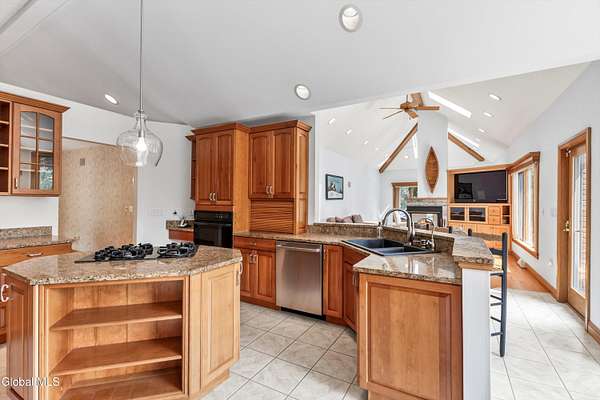 Tucked away on 7.41 peaceful acres, this beautiful home offers space, light, and privacy all on one floor. The bright, open layout features cathedral ceilings and oversized windows that bring in tons of natural light. Off the grand entryway, there's a cozy sitting area with a gas fireplace: perfect for relaxing. The kitchen offers granite counters, plenty of cabinet space, and a sunny breakfast area. A spacious primary suite includes a walk-in closet, dual vanity, and soaking tub. Need more space? The finished walkout basement adds extra room to spread out, complete with a full bath and great for guests, a home office, or a rec room. If you're looking for easy, peaceful living with plenty of room to roam, this one checks all the boxes.