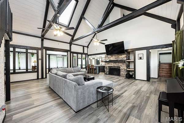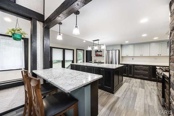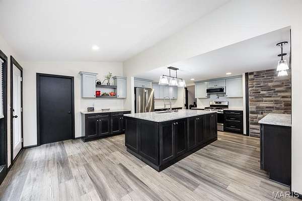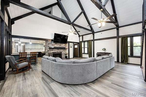 Nestled on 3.02 acres of serene, wooded privacy at 130 Covered Bridge Dr in Belleville, IL, this exceptional home offers the perfect blend of modern luxury and natural tranquility. Tucked away in an off the beaten path neighborhood with a lush, tree-lined backdrop, the property invites peaceful living while remaining just minutes from Scott Air Force Base, top-rated schools, and downtown Belleville's shops and dining. Inside, an open and airy layout welcomes you with soaring ceilings and abundant natural light. The heart of the home is the modern chef's kitchen, featuring sleek granite countertops, a large center island, and a spacious walk-in pantry ideal for meal prep and storage. Flowing seamlessly into the great room and breakfast nook, it's perfect for both everyday living and entertaining, with picturesque views of the wooded yard. The main-level primary suite serves as a true retreat, complete with a beautifully updated en-suite bath boasting dual vanities and a seamless glass shower. Upstairs, three additional bedrooms share a well-appointed bath, providing comfort and flexibility. The partially finished walk-out basement adds versatile living space--ideal for a media room, home gym, or guest area--along with ample unfinished storage.