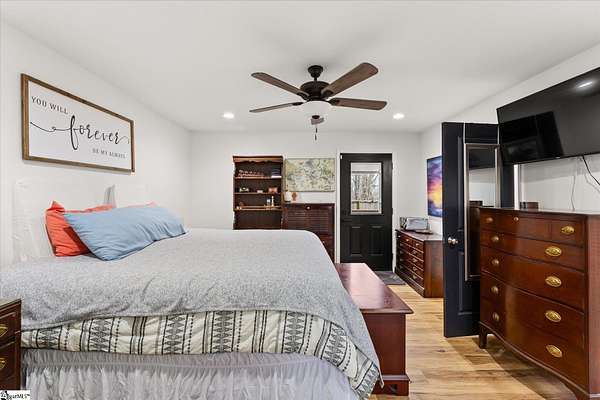 Nearly 5 Acres. No HOA. No Compromises.This isn't just a home, it's a lifestyle coupled with luxury that most people only dream about.Tucked down a long driveway in the foothills of Marietta, SC, this striking 3-bedroom, 3.5-bath ranch-style retreat sits on 4.90 acres of partially fenced yard, pasture, mature woods, and wide open sky. No HOA. No neighbors on top of you. Just space, privacy, and a property that genuinely earns the word rare. Inside, the home delivers a clean, elevated design with soaring cathedral and vaulted ceilings, luxury vinyl plank flooring, and a show-stopping kitchen featuring navy lower cabinetry, crisp white uppers, granite countertops, stainless appliances, and a generous center island designed for gathering. A dedicated coffee bar flows seamlessly into a walk-in pantry and laundry space.Thoughtful, functional, and beautifully executed.The great room anchors the home with a vaulted ceiling and a stone hearth wood-burning fireplace, creating warmth and architectural presence. Above, a loft offers flexible space ideal for a home office, reading retreat, or creative studio.The main-level primary suite is privately positioned and features dual vanities, a walk-in closet, and a spacious walk-in shower. Two additional bedrooms and 2.5 baths provide comfort and flexibility for guests or everyday living. The walkout basement, with interior access and a half bath, provides additional flexible space for a workshop, media room, home gym, or storage. Step outside and the property truly unfolds. Partially fenced with room for horses or hobby farming, the land is both usable and inspiring complete with multiple outbuildings and space to expand your vision. Two rear decks, one off the kitchen and one off the primary suite, offer peaceful vantage points for morning coffee or quiet evenings overlooking your acreage.And here's what makes this property extraordinary: the land is already equipped with a second electrical panel and water hookup, the infrastructure for an additional dwelling unit is already in place. Build a guest cottage, a rental, an in-law suite, or a caretaker's home. The groundwork is done. The opportunity is yours. All of this, and you're still just minutes from Travelers Rest and less than 30 minutes from downtown Greenville.Properties with this combination of acreage, privacy, quality finishes, multi-dwelling infrastructure, and room to grow are genuinely hard to find. When they hit the market, they don't stay long. Schedule your private showing today