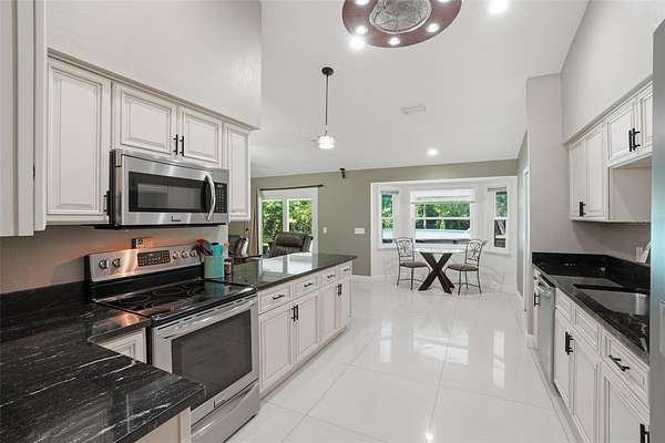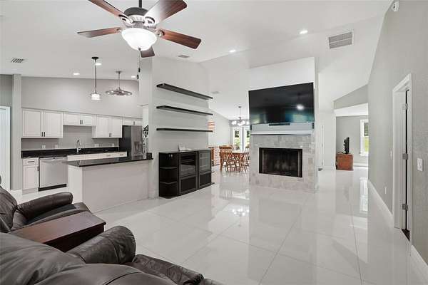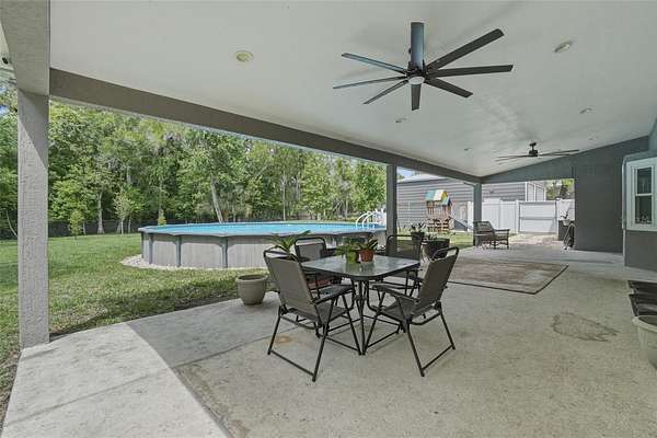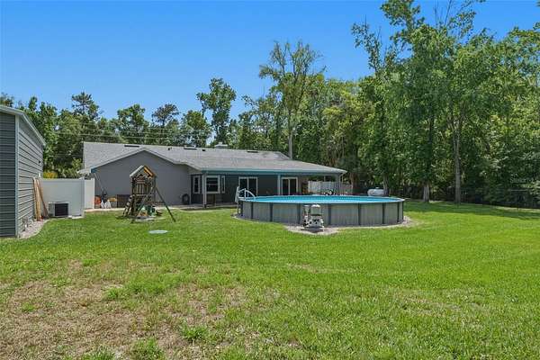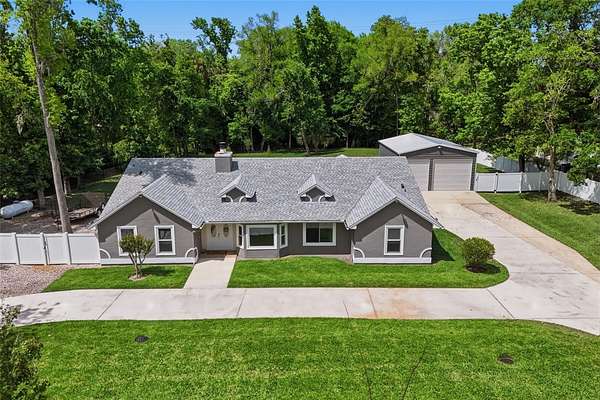 Don’t miss the opportunity to see this exceptional property! Located in the desirable Ranchlands neighborhood of Winter Springs, this exceptional property sits on over 1.5 acres of land, offering both space and privacy. A large circular driveway provides easy access and ample parking. This well-maintained home features 4 bedrooms, 2 bathrooms, and over 2,100 square feet of living space, with a split floor plan ideal for both everyday living and entertaining. As you enter, you’re welcomed by a bright, open interior showcasing tile flooring throughout the home, high ceilings, and an abundance of natural light. The upgraded kitchen is a standout, featuring stainless steel appliances, granite countertops, plenty of cabinet storage and a kitchen nook. The spacious family room includes a cozy fireplace, along with a mounted TV and surround sound system that will convey with the home. The primary suite offers private access to the backyard through sliding glass doors, a walk-in closet, and a generously sized en-suite bathroom complete with dual sinks, and a tub/shower combo. Step outside to enjoy the expansive covered lanai—perfect for relaxing or entertaining—along with a 30' above-ground pool to enjoy Florida’s warm weather and a play area for the little ones. Additional upgrades include a home generator, AC and septic tank and pump all installed in 2017, a water heater in 2018, pool in 2020, roof in 2021 and pool pump in 2026. In addition to the attached 2-car garage, the property also features a 25' x 30' detached garage equipped with electricity and AC—ideal for extra vehicles, a workshop, or storage. A side-entry gate provides access for RV or boat parking to store in your backyard. With no HOA, you’ll enjoy the flexibility to use the property as a primary residence, investment, or income-producing opportunity. This hidden gem offers a peaceful, country-style setting while still being conveniently located near major roads, shopping, and dining. Come see it today and make it yours!