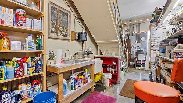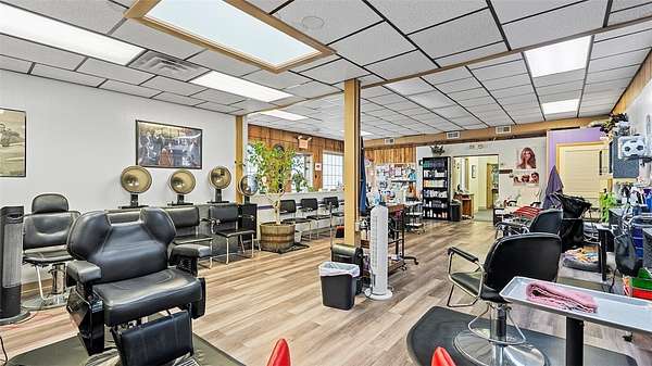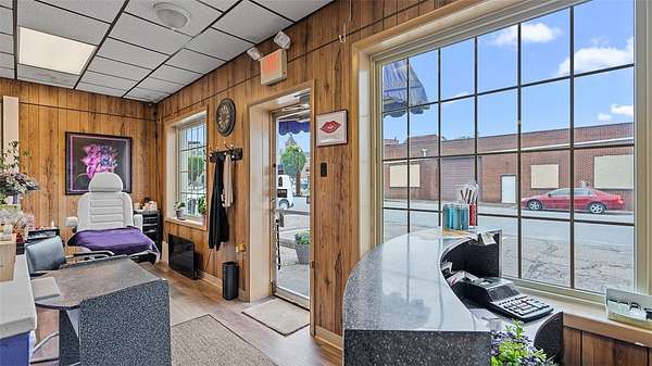 Versatile and spacious commercial property--far larger than it appears and a true must-see. The right parcel features a one-story building with dedicated HVAC, water tank, Guardian Security System, large half bath, salon setup, and private office with garage door. The left parcel includes a two-story building with its own HVAC, two water tanks, and two Guardian pads. First floor offers warehouse with heated floors, front garage door, kitchenette, new half bath (2024), and rear unheated garage. Current tenants include salon, exec ofc & warehouse, and garage bay. Second floor is rented to a long-term tenant and includes two units, each with a kitchen, full bath, and two office/flex rooms. One unit has exterior stairs; the other connects to the warehouse. Units are linked by a locking door. Utilities are shared under a single bill. Ideal for owner-occupants or investors seeking flexible warehouse, office, and residential space. Owner financing will be considered.