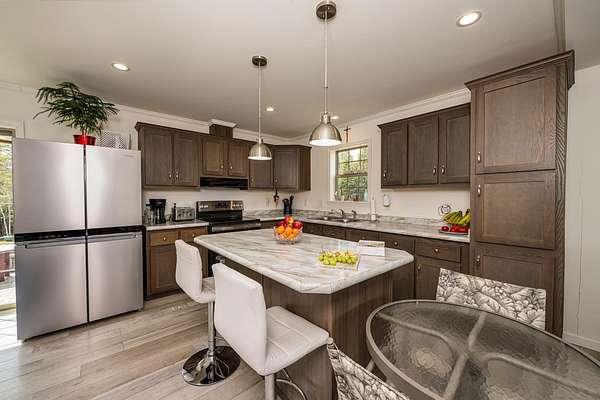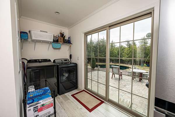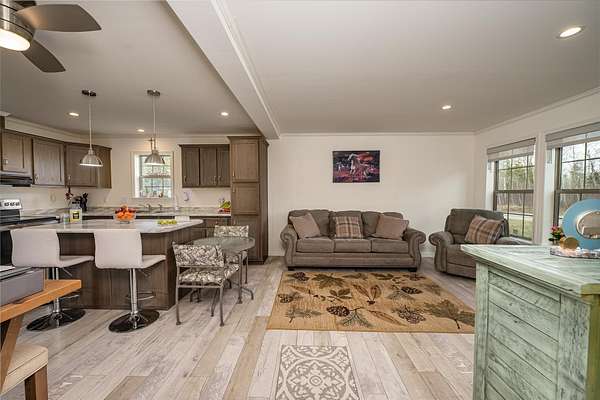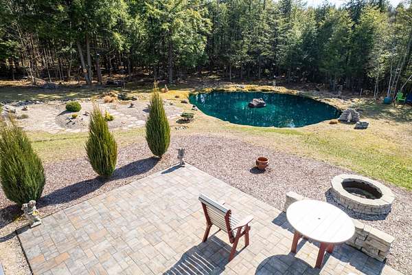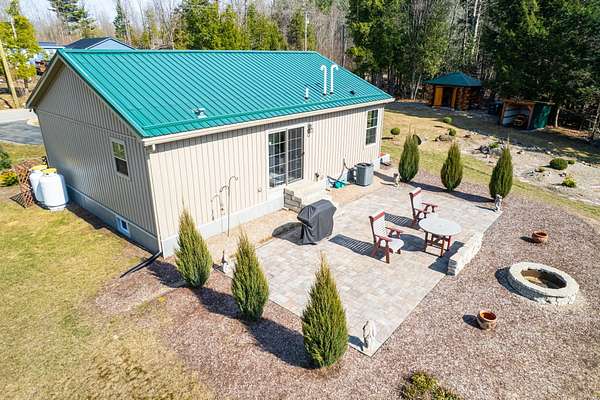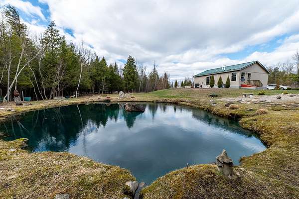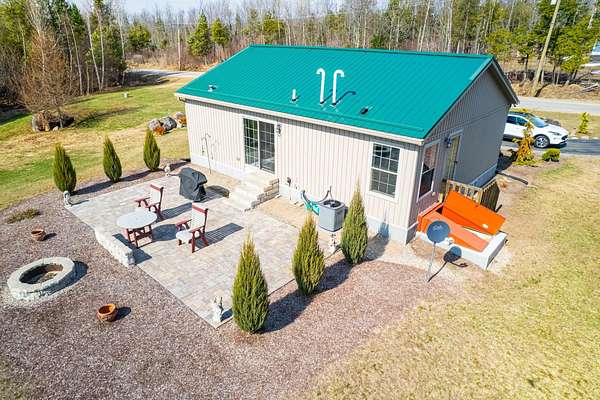 Welcome to this beautifully maintained 2-bedroom, 1-bath home situated on an expansive 30-acre parcel at 130 Fisk Rd in Nicholville, NY. Built in 2021, this property offers the perfect blend of modern efficiency, quality craftsmanship, and peaceful country living. From the moment you arrive, you’ll appreciate the home’s attractive board and batten vinyl siding, along with the convenience of a paved wrap-around driveway providing easy access and ample parking. The grounds have been thoughtfully landscaped with stunning conifers that enhance the natural beauty of the setting. Inside, no detail has been overlooked. The home features gorgeous Armstrong waterproof laminate flooring in the sought-after Prizm color, offering both durability and style throughout. The open and functional layout is complemented by high-quality systems designed for comfort and reliability. Enjoy year-round peace of mind with a Kohler whole-house generator that automatically activates during power outages. The high-efficiency heating and central air system includes an Amana 2.5-ton compressor and evaporator, with the central air component newly installed in 2025, ensuring modern comfort in every season. Adding to the property’s charm is a stunning 45-foot diameter artesian-fed pond, creating a serene focal point and a perfect place to relax and enjoy the surrounding nature. A beautiful hand-crafted log shed adds both character and practical storage, perfectly complementing the property’s rustic appeal. With 30 acres of land, this property offers endless possibilities—whether you’re seeking privacy, recreation, or future expansion. This is a rare opportunity to own a thoughtfully designed, move-in ready home with premium features in a peaceful setting.