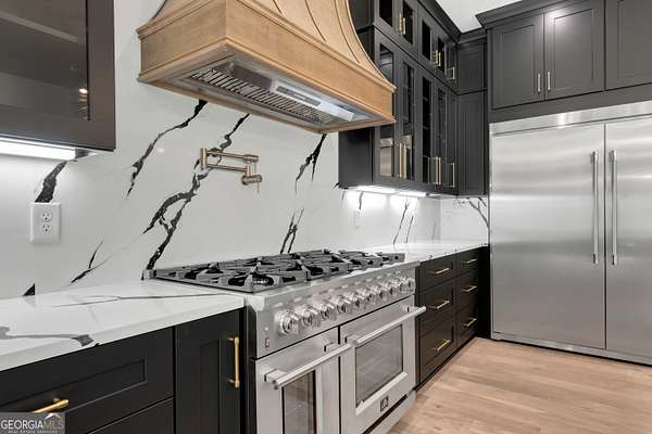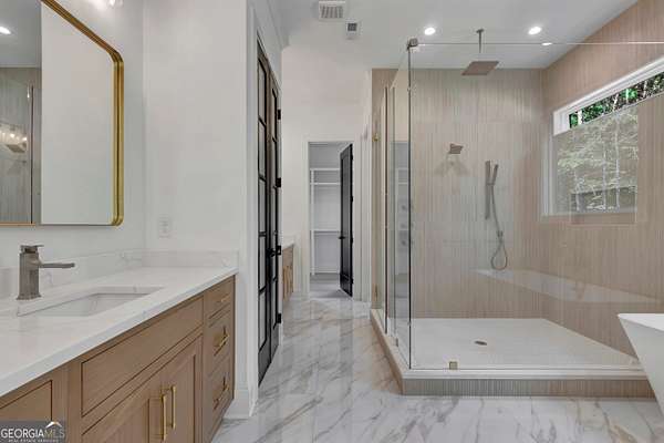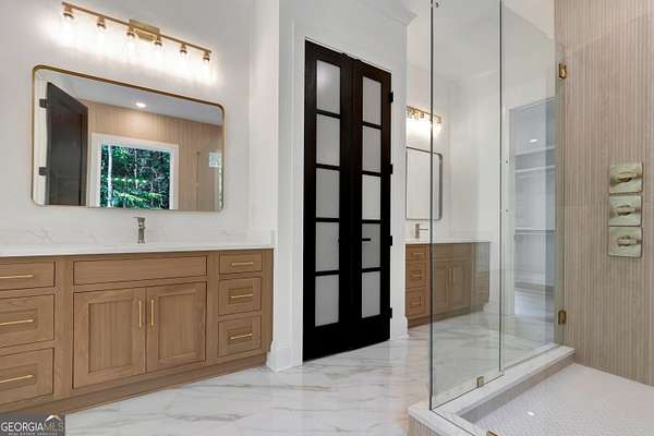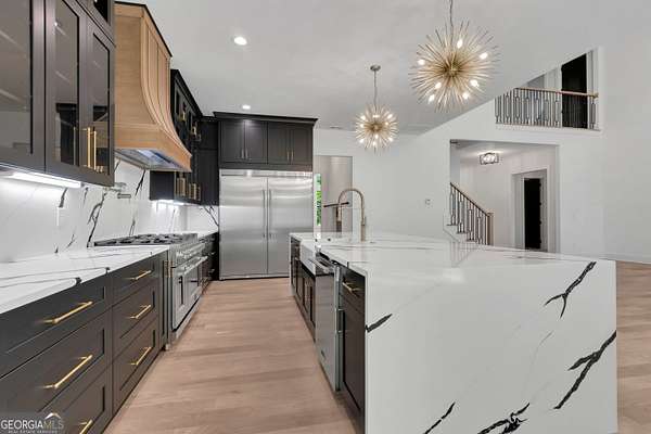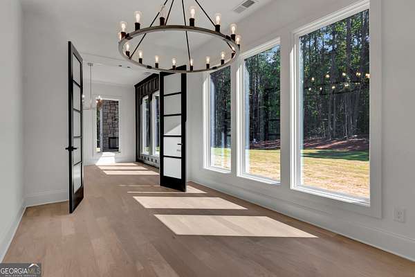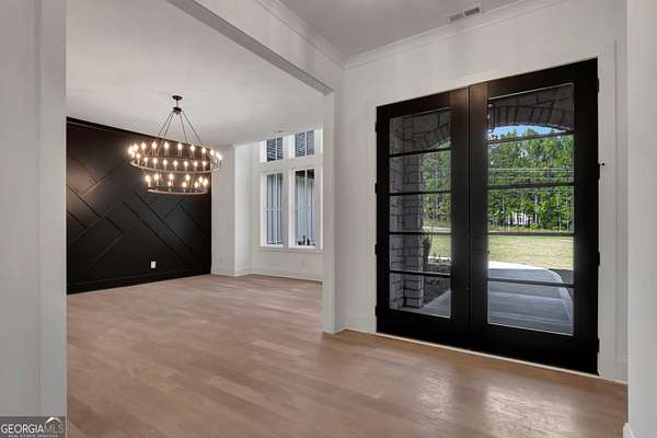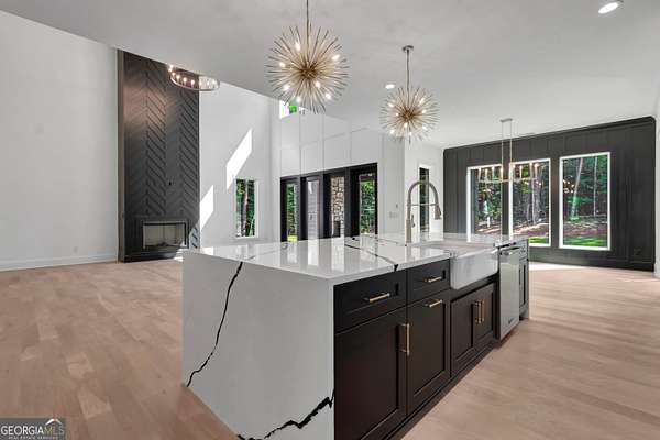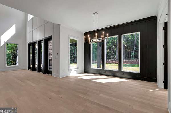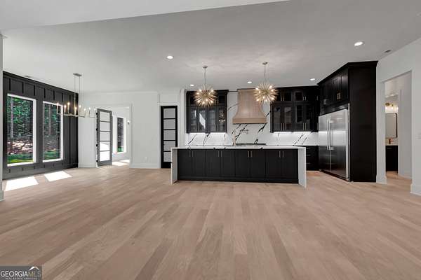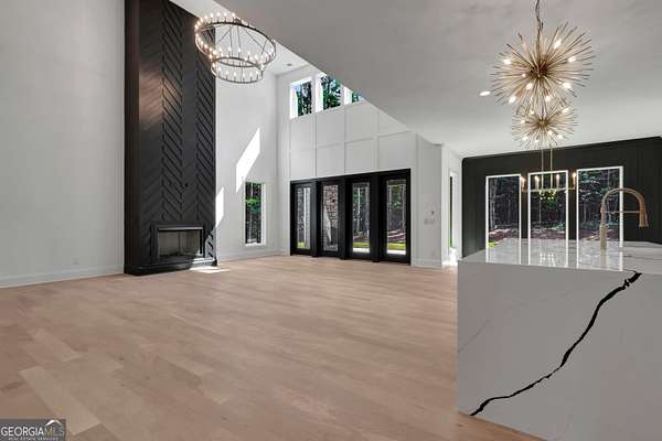 NEW CONSTRUCTION ~ THE RESERVE at KELLY LAKE. A Stunning Modern New Home by Chris Gibson. This home has 6086 square feet of family living space. Ten foot ceilings plus a two story Family Living area with fabulous natural light. The main floor offers a large open Foyer, Formal Dining with an accent wall and tall windows has adequate seating for 12. The Primary Suite with an exceptionally spacious closet with built in features, a classically tiled shower with two shower heads plus a handheld with frameless glass surround, and a free standing soaking tub. Dual sinks and cabinets are separated and offer a full linen closet with custom door and great storage between. A laundry room with sink and plenty of cabinets is just adjacent to this lovely suite with private dual door entrance. A Guest/Second bedroom with full shower and spacious closet is also on the main floor and has direct access to the Friends Entrance at the side of the home. You will see in that area the convenient drop station, bench and cubbies for the family as they enter from the garage. The Office/Library with an instant on fireplace overlooks the rear garden from the floor to ceiling windows. This open concept plan offers a kitchen straight from the pages of a designer magazine. Custom wood Cabinets to the ceiling, deep drawers, and pull out features complimented by a full quartz backsplash to the ceiling. A 12 foot island with waterfall style quartz counters and stained cabinets on both sides for extra seasonal storage, a professional 48 range with double ovens highlighted by a gorgeous wood stained custom built hood and a commercial vent system. The stainless appliances include a 72 wide refrigeration station that offers a full 36 refrigerator and separate 36 full freezer, a cook's dream! And do not miss the terrific walk in pantry with built in wood shelving, lots of extra outlets, and space for most everything you need! Just an exceptional kitchen all around that will offer a pleasant cooking experience for any level. The 2 story Family Room has a warming gas fireplace with gas logs for a cozy ambiance, lovely lighting, and a spacious family dining area. Again, with tall windows and doors throughout. A covered porch with gas fireplace extends the living and entertaining space even more! The entire main floor and staircase have wide plank white oak flooring finished on site. The neutral tone light stain chosen is appealing with any decor. The second level has approximately 2000 square feet and offers a Play/Media Room, Game Room suitable for table games and more, and three additional spacious bedrooms with private baths and walk in closets. ALL ROOMS open to a huge loft with hardwood floors and an overlook to the family room. Plus a second laundry room for the upstairs! Perfect family spaces for everyone and/or great conditioned storage if desired. Ths beautiful home filled with natural light has it ALL!! ~Three car garage with additional storage. This 6.22 acres of level ground is professionally landscaped, sodded, and irrigated on all sides. Some areas are fenced with attractive black 4 board fencing and landscaped with evergreen Green Giant Arborvite trees that last a lifetime. This homesite also has a beautiful location for a pool that will be a focal point from inside the home also if added. The septic system location was designed for a future pool . Also, additional building sites for an additonal garage, ADU, or pool house are available. Excellent Peeples Elementary, Whitewater Middle and Whitewater High Fayette County Schools, minutes to Peachtree City shopping and entertainment. This fabulous home is complete and ready NOW for occupancy. Call today for additional information. The new residents are also invited to join The Clubs of Peachtree City, a network of five golf, tennis, swimming, social, and dining clubs throughout the area for a reasonable fee.