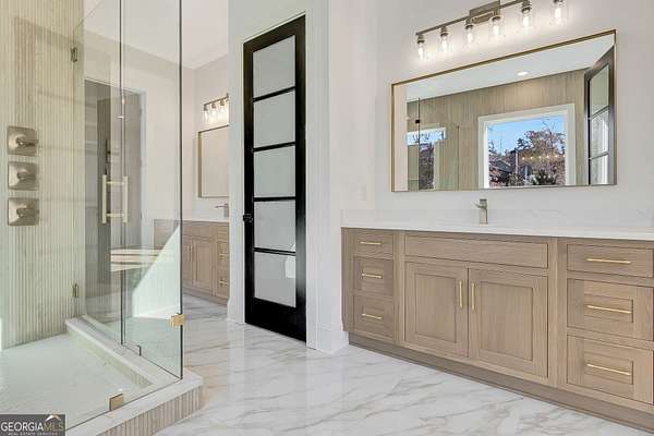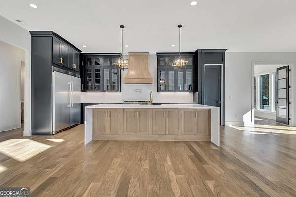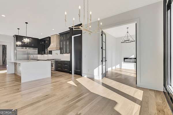 GORGEOUS ~ THE RESERVE at KELLY LAKE. A Stunning Modern New Home by Chris Gibson. This home has 6086 square feet of family living space. Ten foot ceilings plus a two story Family Living area with fabulous natural light. The main floor offers a large open Foyer, Formal Dining with an accent wall and tall windows has adequate seating for 12. The Primary Suite with an exceptionally spacious closet with built in features, a classically tiled shower with two shower heads plus a handheld with frameless glass surround, and a free standing soaking tub. Dual sinks and cabinets are separated and offer a full linen closet with custom door and great storage between. A laundry room with sink and plenty of cabinets is just adjacent to this lovely suite with private dual door entrance. A Guest/Second bedroom with full shower and spacious closet is also on the main floor and has direct access to the Friends Entrance at the side of the home. You will see in that area the convenient drop station, bench and cubbies for the family as they enter from the garage. The Office/Library with an instant on fireplace overlooks the rear garden from the floor to ceiling windows. This open concept plan offers a kitchen straight from the pages of a designer magazine. Custom wood Cabinets to the ceiling, deep drawers, and pull out features complimented by a full quartz backsplash to the ceiling. A 12 foot island with waterfall style quartz counters and stained cabinets on both sides for extra seasonal storage, a professional 48 range with double ovens highlighted by a gorgeous wood stained custom built hood and a commercial vent system. The stainless appliances include a 72 wide refrigeration station that offers a full 36 refrigerator and separate 36 full freezer, a cook's dream! And do not miss the terrific walk in pantry with built in wood shelving, lots of extra outlets, and space for most everything you need! Just an exceptional kitchen all around that will offer a pleasant cooking experience for any level. The 2 story Family Room has a warming gas fireplace with gas logs for a cozy ambiance, lovely lighting, and a spacious family dining area. Again, with tall windows and doors throughout. A covered porch with gas fireplace extends the living and entertaining space even more! The entire main floor and staircase have wide plank white oak flooring finished on site. The neutral tone light stain chosen is appealing with any decor. The second level has approximately 2000 square feet and offers a Play/Media Room, Game Room suitable for table games and more, and three additional spacious bedrooms with private baths and walk in closets. ALL ROOMS open to a huge loft with hardwood floors and an overlook to the family room. Plus a second laundry room for the upstairs! Perfect family spaces for everyone and/or great conditioned storage if desired. Ths beautiful home filled with natural light has it ALL!! ~Three car garage with additional storage. This 6.22 acres of level ground is professionally landscaped, sodded, and irrigated on all sides. Some areas are fenced with attractive black 4 board fencing and landscaped with evergreen Green Giant Arborvite trees that last a lifetime. This homesite also has a beautiful location for a pool that will be a focal point from inside the home also if added. The septic system location was designed for a future pool . Also, additional building sites for an additonal garage, ADU, or pool house are available. Excellent Peeples Elementary, Whitewater Middle and Whitewater High Fayette County Schools, minutes to Peachtree City shopping and entertainment. This fabulous home is complete and ready NOW for occupancy. Call today for additional information. The new residents are also invited to join The Clubs of Peachtree City, a network of five golf, tennis, swimming, social, and dining clubs throughout the area for a reasonable fee.