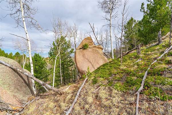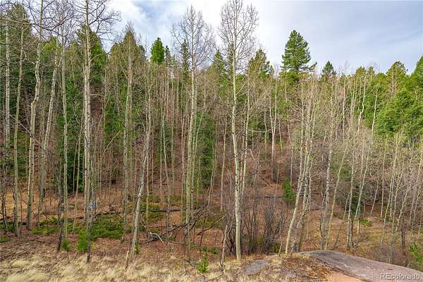1.46-acre lot tucked at the end of a quiet cul de sac in Cripple Creek Mountain Estates, offering the kind of natural privacy that's hard to find in an amenity-rich mountain community. The lot is heavily wooded with a mix of mature pines and aspens, dramatic granite rock outcroppings, and steep terrain that gives it a true wilderness feel — with a small flat area that provides a workable building or camping footprint without having to touch the character of the land around it.