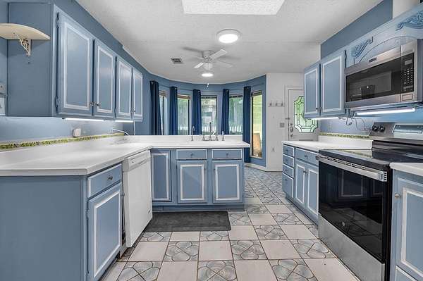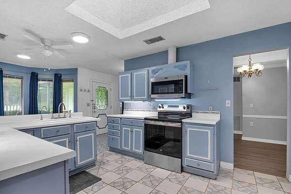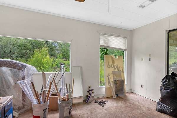 - Blinds, Boxed Ceiling, Breakfast Bar, China Cabinet, Desk, Miniblinds, Pantry, Vaulted Ceilings, Woodburning Fireplace