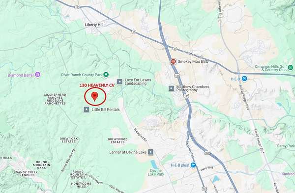 130 Heavely Cove location offers the perfect blend of privacy and convenience. Rayvon Ranch is tucked away in a small, quiet residential area and is situated within easy reach of essential amenities and modern conveniences. This parcel of land is a picturesque and buildable lot nestled in the serene community near Leander, Texas, encompassing 2.328 acres of land and offering a tranquil and spacious setting for your next dream home. Situated in a quaint one-street 7-lot community of 2+ acre premium lots, 130 Heavenly Cove boasts breathtaking natural surroundings, including many large, mature Oak trees. Shopping centers, HEB, restaurants, entertainment options, medical facilities. The sought-after Liberty Hills ISD schools are just a short drive away, ensuring that residents can enjoy the benefits of both nature and urban conveniences. With its proximity to the Texas Hill Country, residents can explore hiking trails, engage in watersports on nearby lakes, or simply revel in the beauty of the surrounding landscapes. 130 Heavenly Cove presents the last opportunity to build a residence in the exclusive community of Rayvon Ranch. Build your next Dream Home at 130 Heavenly Cove and enjoy the peaceful ambiance and atmosphere of calm and relaxation, providing the owners with a retreat from the hustle and bustle of city life.