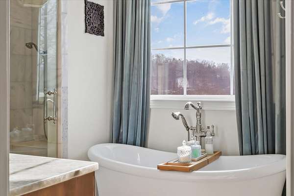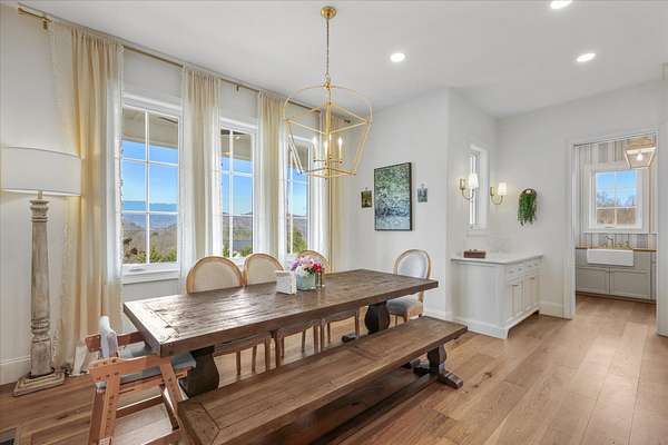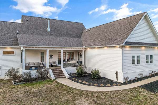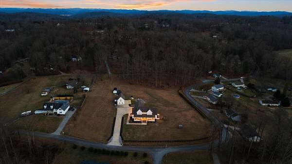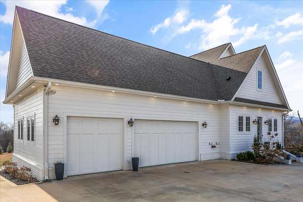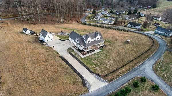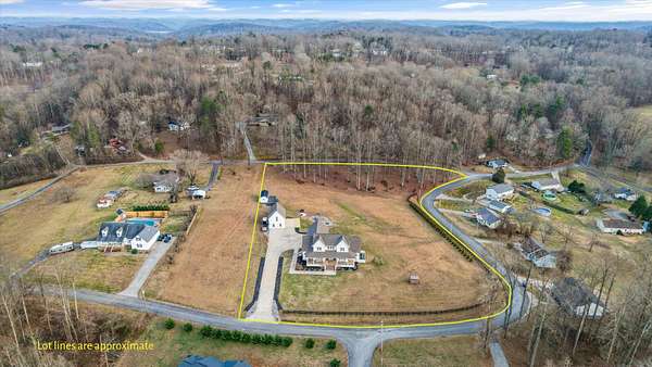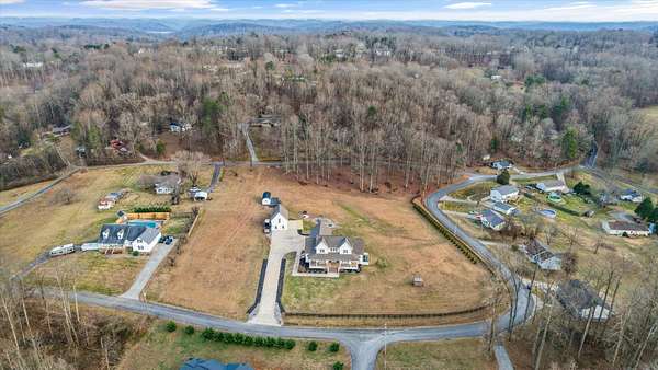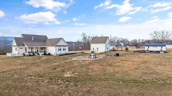 Custom modern farmhouse with a 1,347 +/- square foot guest house, a greenhouse, and a storage building on a 3.3 +/- acre lot with mountain views in Clinton, TN approximately 20 minutes from Knoxville and less than 2 hours to Chattanooga. This 4 or 5 bedroom, 3.5 bath home was built in 2021 boasts an open floor plan, the primary on the main level, a 3-car garage, great outdoor living spaces, room for a pool if desired, and separate living quarters for your extended guests. No detail was overlooked, and you will truly appreciate the premium finishes, including the hardwoods and tile, lofty ceilings, arched doorways, casement windows, decorative and recessed lighting, desirable built-ins, beautiful landscaping and more. Your tour begins with entry from the covered front porch to the dedicated foyer that leads to an inviting den or study. The heart of the home is the spacious great room with a marble gas fireplace with built-ins on either side and open to the kitchen and dining area. The kitchen has a large center island with pendant lighting, marble countertops, tile backsplash, soft-close cabinetry, high-end appliances including a Hallman gas range with a convenient pot filler, Dacor cabinet-style fridge and dishwasher, and an adjoining butler's pantry with fantastic storage and an extra sink. It is also just steps away from the mudroom and garage for easy loading and unloading. The primary suite is a retreat unto itself with a luxurious primary bath with separate vanities, a free-standing tub, a shower with dual shower heads and tile and glass surround, as well as a large walk-in closet with organizer system and a separate laundry room with wood folding counter and a stainless utility sink. Head upstairs where you will find 3 or 4 additional bedrooms, one with a private bath, another shared hall bath and a central bonus room.