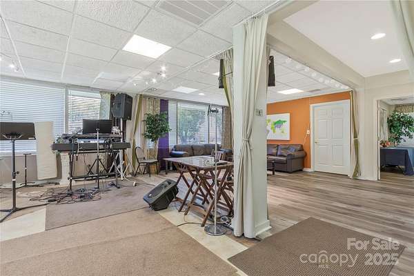THIS RARE AND EXCITING COMMERCIAL BUILDING & LAND is located on the edge of Regent Park neighborhood. A prime 2.25 acre commercial property offers exceptional potential for a variety of business ventures. Located in the York County, SC zoning district of GC, with private road on one side and public road frontage on other side. The 2,301 sqft building (currently used as a church but could be used for other approved GC commercial use) has a welcome area (with room for receptionist desk and waiting room chairs), 2 main floor offices and a larger open area. Also on main floor is a small kitchen, bathrooms and utility room. Upstairs is an office with direct access to the roof-top area. With asphalt parking lined for 30 +/- vehicles, this amazing location is just minutes from I-77 (exit 90), downtown Fort Mill, Indian Land, and Ballantyne. GC Zone Use Regulation Table is in agent attachments or available on the York County website. County approval may be required for most end uses.