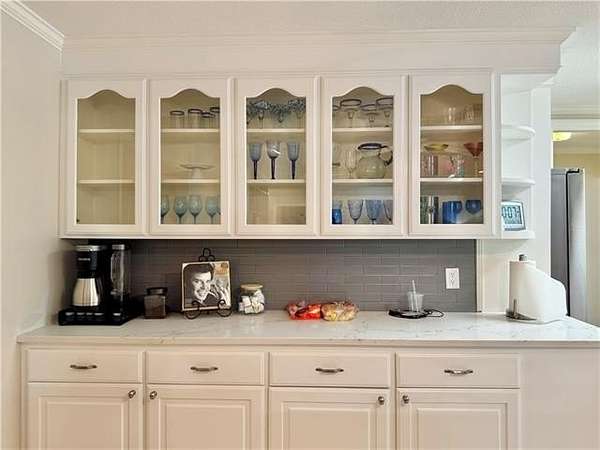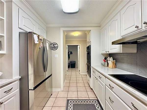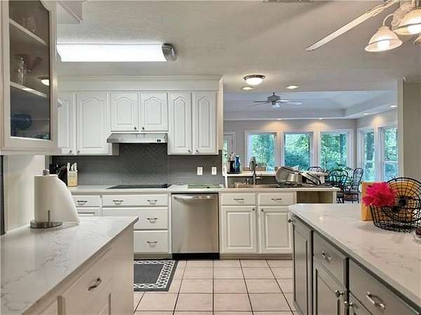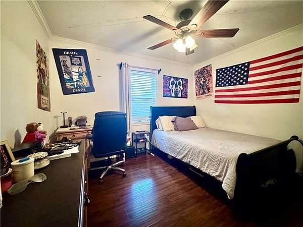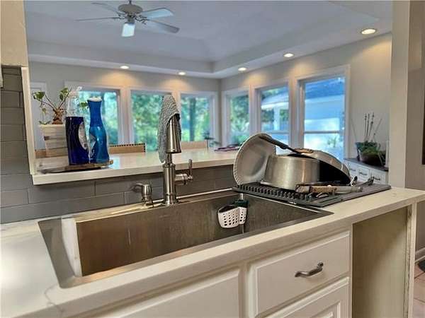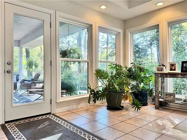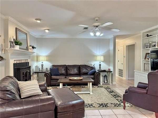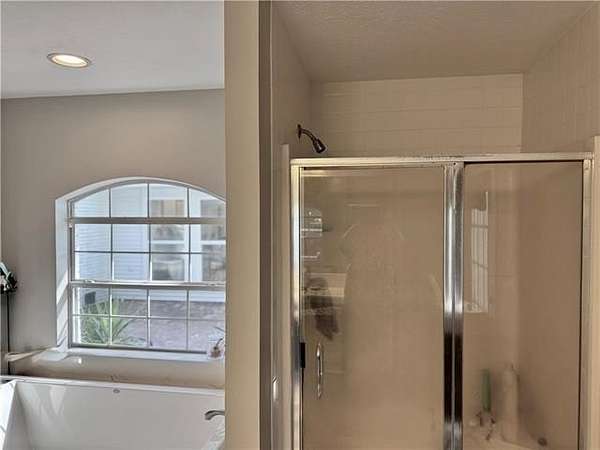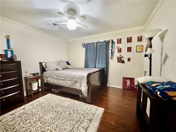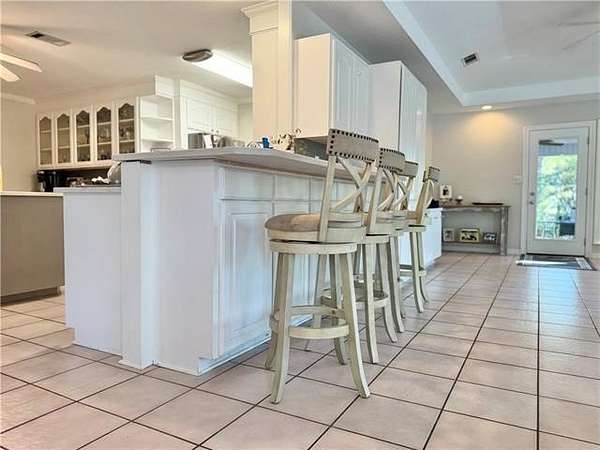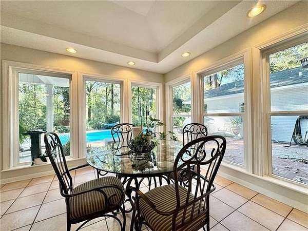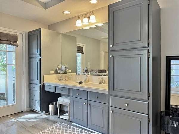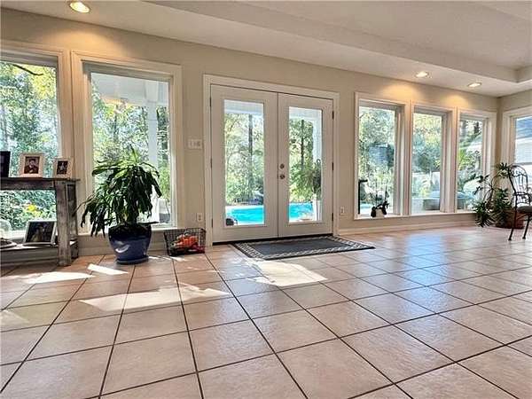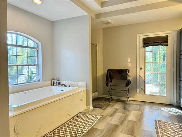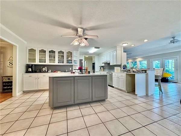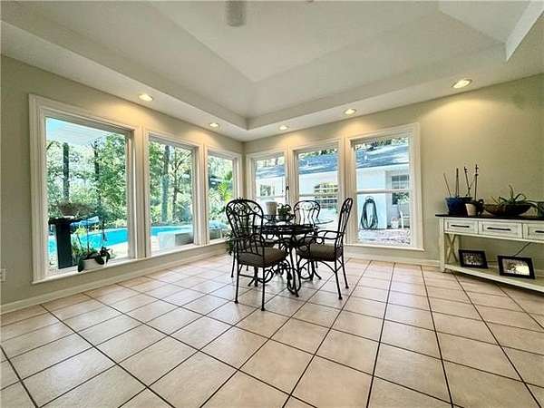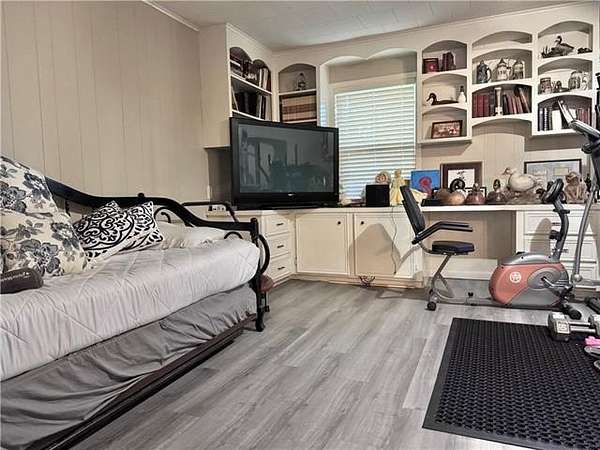 The primary bedroom is oversized and includes two large his-and-hers closets. The updated primary bathroom offers an air tub and separate shower. The fifth bedroom is currently being used as a workout room, offering flexibility for various needs.