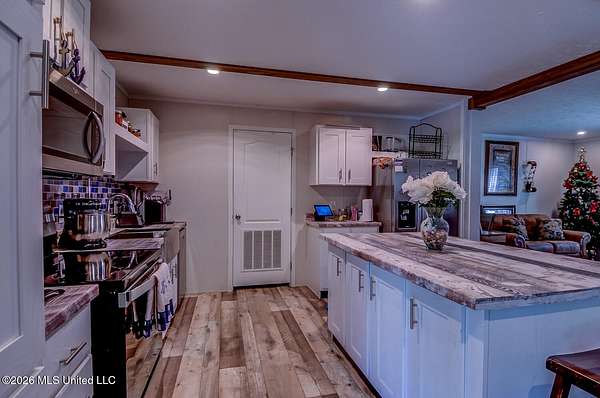 Welcome to your own private retreat! Nestled on 5 beautiful acres, this 4-bedroom, 2-bathroom home offers the perfect blend of space, comfort, and peaceful country living. Step inside to a welcoming living room that provides plenty of space to relax or entertain. The open kitchen is a standout feature, complete with a large island, breakfast bar, and a charming farmhouse sink--perfect for both everyday living and hosting gatherings. The primary suite is generously sized and designed for comfort, featuring a spacious en-suite bathroom with double sinks, a separate soaking tub, and a walk-in shower--creating the perfect place to unwind at the end of the day. With four bedrooms and expansive outdoor space, this property offers endless possibilities--whether you're looking for room to grow, entertain, or simply enjoy the quiet surroundings. Don't miss your chance to own this slice of country living!