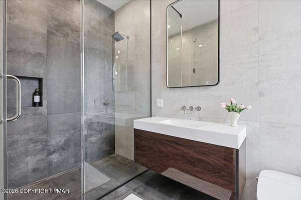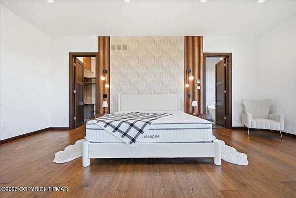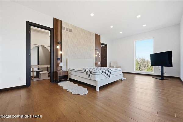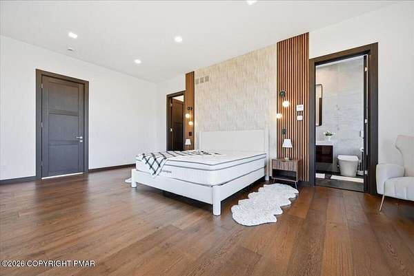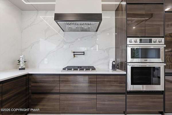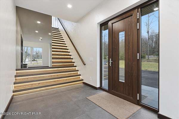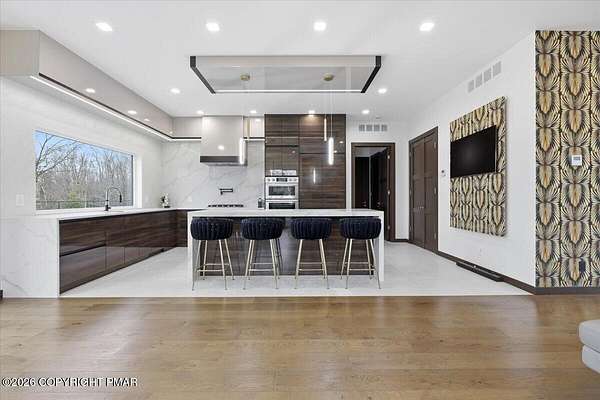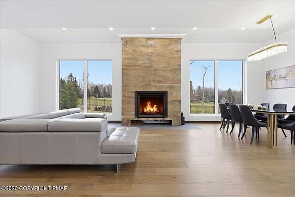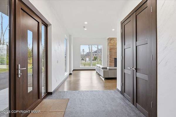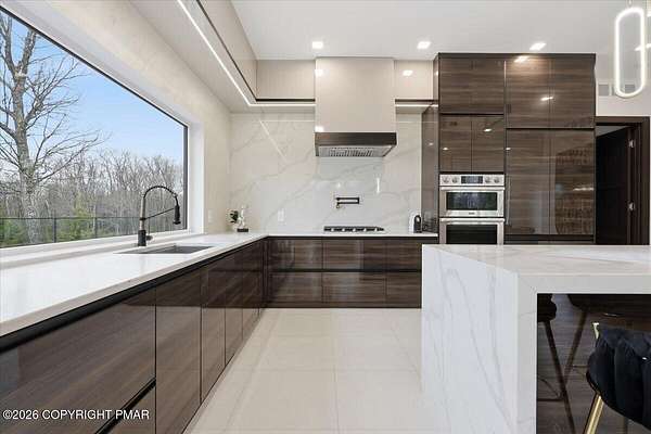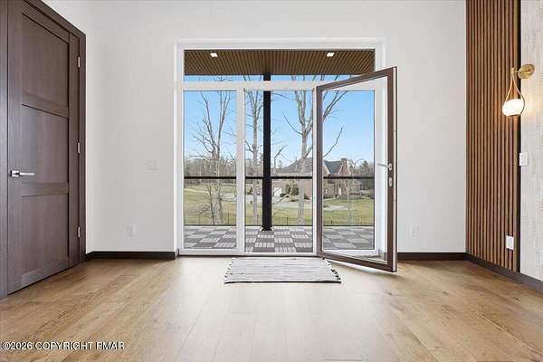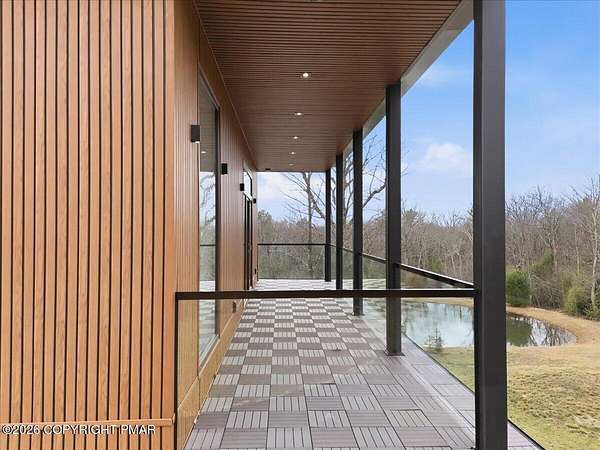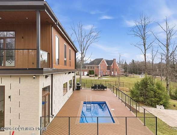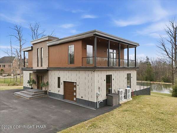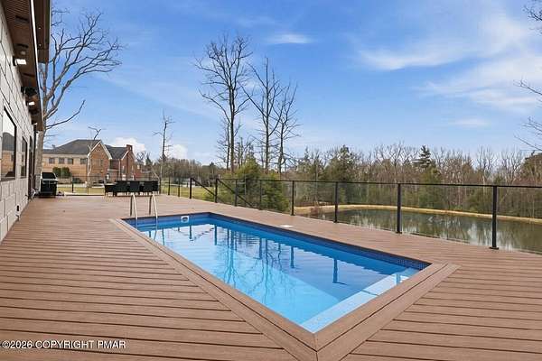 Welcome to Laurelbrook Estates, an exclusive enclave in Bear Creek, where this extraordinary new construction masterpiece redefines modern luxury. Privately set on over 2 acres, the residence captures uninterrupted water views of the detention pond, creating a serene, resort-like backdrop. Spanning over 3,000 square feet, the home is a statement of architectural elegance, featuring 10-foot ceilings and a dramatic, sun-drenched great room designed to impress. Walls of glass flood the interior with natural light, while private bedroom terraces invite seamless indoor-outdoor living with breathtaking views. The showpiece Italian designer kitchen is a work of art, appointed with sleek custom cabinetry, quartz countertops, and refined, high-end finishes--perfectly curated for both elevated entertaining and everyday sophistication. Crafted for comfort and wellness, the residence offers radiant heated floors, central air and heat, and a whole-house fresh air ventilation system. Indulge in spa-level amenities including a steam room and sauna, or enjoy cinematic experiences in the private home theater within the family room. Outdoors, a true private retreat awaits--complete with a stunning inground pool and a radiant-heated driveway for year-round ease. A 6-car carport, to be completed by the end of April, adds both convenience and prestige. Ideally located just minutes from the PA Turnpike, this exceptional property offers the rare combination of privacy, accessibility, and no HOA fees. A flawless fusion of design, innovation, and lifestyle--this is luxury living without compromise. Some photos have been AI-staged for illustrative purposes. Owner is responsible for detention pond maintenance. Taxes are currently assessed on land only and will be reassessed.