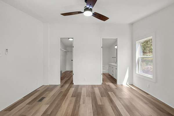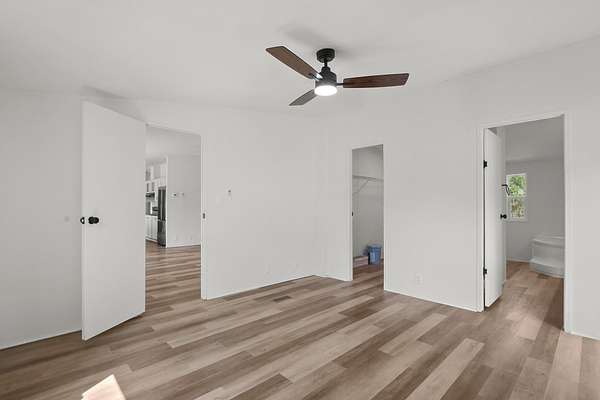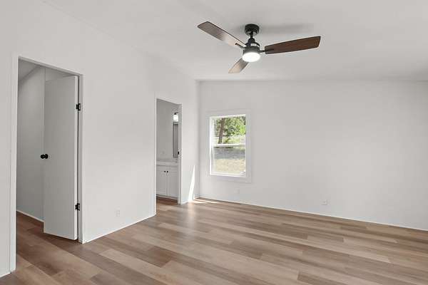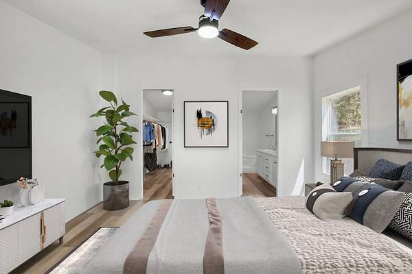 - Breakfast Bar, Ceiling Fan(s), Crown Molding, Double Vanity, In-Law Floorplan, Kitchen Island, Pantry, Primary Bedroom On Main, Vaulted Ceiling(s), Walk-In Closet(s)