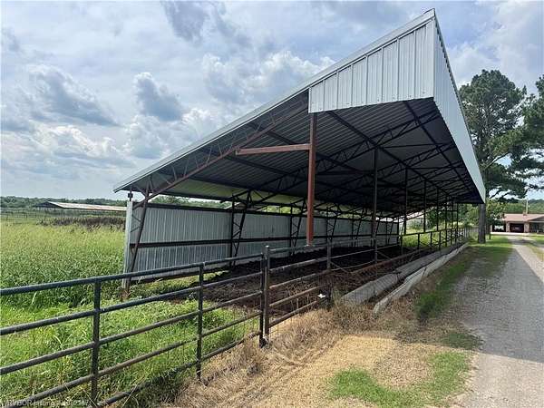 130+/- Acre Turn-Key Cattle Facility in Howe, OK - Strategically Designed, Highly Functional, and Ready to Operate Discover a rare opportunity to own a custom-built cattle feeding, receiving, and backgrounding facility in the heart of Southeast Oklahoma. Situated on 130+/- acres in Howe, this premier operation is thoughtfully designed for efficiency, ease of handling, and maximum productivity-with a feeding capacity for up to 600 head of cattle. Previously used as an embryo transfer and artificial insemination facility, this property features 9 total barns, each equipped with covered feed bunks accessible by feed truck. The working pens are well-laid out, with multiple receiving alleys to prevent direct contact and provide space for isolation. A hydraulic chute with integrated scales and a palpation cage streamlines cattle handling, while a covered alley and climate-controlled vet room enhance safety and animal health care. The ranch is fenced and cross-fenced into six well-maintained pastures, including a goat-fenced section on the west side. Water access is abundant with five stocked ponds, 3 double-sided Ritchie automatic waterers, multiple frost-free hydrants, and barns equipped with misters to keep livestock cool and comfortable in the summer. Additional highlights include: Adjustable semi loading chute for easy transport Improved grasses for optimal grazing and feed efficiency Beautiful building sites atop the hill with panoramic views Excellent deer and wildlife presence for recreational appeal Whether you're expanding your cattle operation, investing in a backgrounding facility, or seeking a one-man ranching setup, this property delivers unmatched value and functionality. Every inch of this facility was strategically planned to maximize productivity while minimizing labor. Located in a prime ranching region with multiple local livestock markets, this property is a true gem for the serious operator.