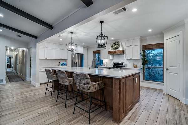 This property delivers a true luxury rural feel while still offering the convenience of suburban living. Inside, you will find a spacious living area filled with natural light, a beautifully updated kitchen with custom cabinets and quartz countertops, an elegant dining space, and a private primary suite that feels like a retreat. The oversized custom closet and updated bathrooms complete the home with modern finishes while maintaining a warm, inviting feel throughout.