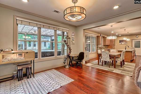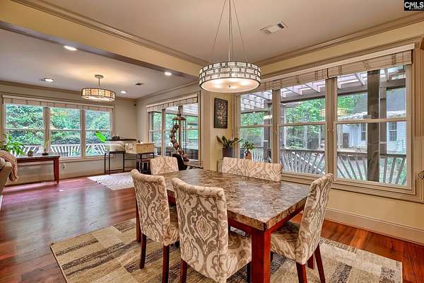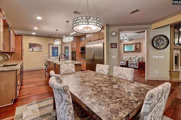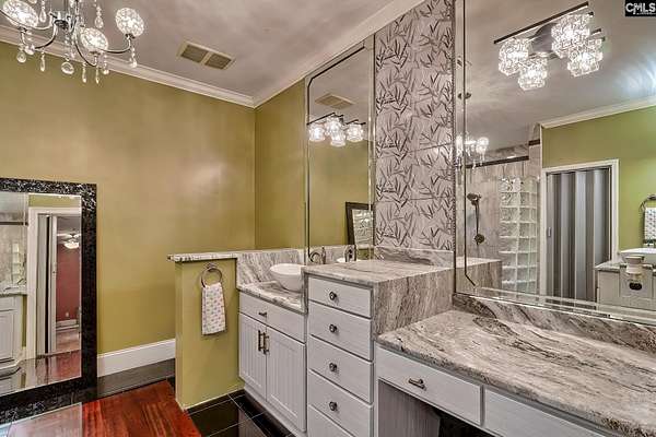 Tucked at the end of a quiet cul-de-sac on 2.42 acres in Orchard Place, this home gives you space, privacy, and a layout that’s hard to find. The neighborhood is made up of custom homes on large lots, and the HOA is minimal, only in place to maintain the private road. This is a home that actually works for the way people live. Whether you’ve got a large family or need a true multigenerational setup, there’s room for everyone without sacrificing privacy. The kitchen was completely redone and it shows. Granite counters, updated cabinets, copper sinks, touch faucets, black stainless appliances, separate fridge and freezer, beverage fridge, and a large island with power. It flows right into the main living area with a granite fireplace, built ins, and a wet bar. Brazilian cherry hardwoods run throughout the main living spaces on the main level and give the home a warm, high end feel. The primary suite feels tucked away with its own sitting area, private porch access, and an updated bath with new granite counters, fixtures, and a large walk in shower. Upstairs, the FROG offers flexibility as an additional bedroom, office, or private space. The lower level is where this one really separates itself. It lives like a second home with its own kitchen, large open flex space, bedroom, full bath, laundry, and storage. Perfect for extended family, guests, or someone who just wants their own space. The home has been updated throughout with flooring, paint, lighting, and built ins. Big ticket items like the Generac generator, tankless water heater, and HVAC have already been handled. Outside, you’ve got multiple places to unwind. A fenced yard, deck, screened porch, covered patio, and a hot tub area that feels private and tucked away. Add in the stonework, updated railings, landscaping, and sprinkler system and it’s ready to go. And then there’s the guest house. A separate 1 bed, 1.5 bath with rental history that gives you options. Disclaimer: CMLS has not reviewed and, therefore, does not endorse vendors who may appear in listings.