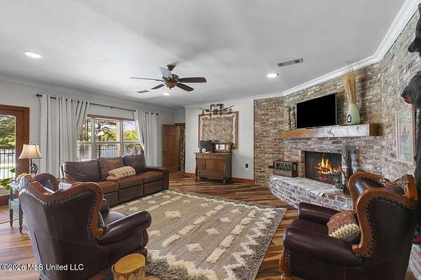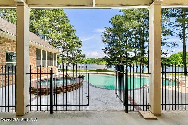 Welcome to this exceptional waterfront home located in the gated Highlands community, set along a breathtaking 100-acre lake. Situated on approximately 6 acres, this 6 bedroom, 5.5 bathroom home offers the perfect balance of luxury, space, and functionality. Designed to maximize its incredible setting, the home features panoramic lake views from multiple vantage points, including a spacious upstairs balcony ideal for relaxing or entertaining. Inside, you'll find a beautiful kitchen by expansive living areas that provide ample space for gatherings of any size. The thoughtfully designed floor plan includes a downstairs primary suite with stunning water views, complete with an en-suite bathroom featuring a jetted tub, dual vanities, and a large walk-in closet. A second bedroom with a private bath on the main level offers convenience for guests. Upstairs, the home is uniquely arranged four additional bedrooms, a jack-and-jill bathroom, a bonus room, a den, and a kitchenette--creating an ideal setup for entertaining, hosting, or extended stays. Additional highlights include a game room and a spacious laundry/mud room designed for everyday functionality. Step outside to your own private retreat, complete with a gunite pool, hot tub, and plenty of outdoor space to enjoy the peaceful lakefront setting. This creates the perfect place to relax, entertain and enjoy every season. Whether it's morning coffee by the water, afternoons in the sun or evenings soaking in the hot tub, this space was made for making memories. With a 3-car garage, gated community access, and an unbeatable combination of privacy, views, and amenities, this property offers a rare opportunity to own a true waterfront retreat. Call today to schedule your private showing.
