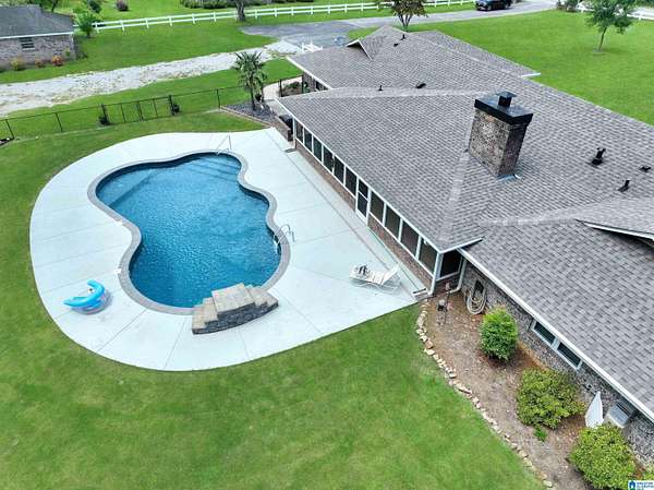 Discover this stunning property on 3 acres, featuring a spacious home perfect for family living. The open floor plan, modern and updated kitchen and bathrooms all feature luxury! Enjoy the convenience of a 2-car garage (20x24), a 16x20 garage with power and lights, and a remarkable 40x40 shop with a 12-foot lean-to, insulation, and electrical--ideal for projects or storage. Step outside to your backyard oasis, complete with a sparkling pool and a soothing waterfall, perfect for relaxation and entertaining. The expansive 40x11.5 screened-in porch allows for year-round outdoor enjoyment.With a charming 40x7 stamped front courtyard porch, this home offers great curb appeal. Don't miss your chance to own this exceptional property with ample space for all your needs. Schedule a viewing today and take the first step toward making this dream home yours!