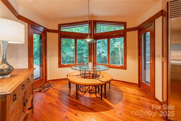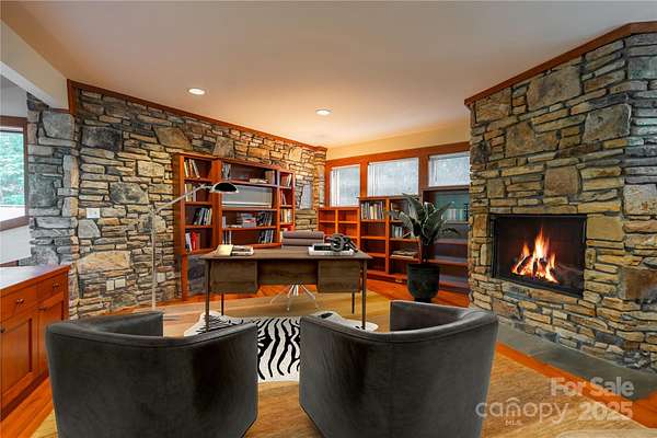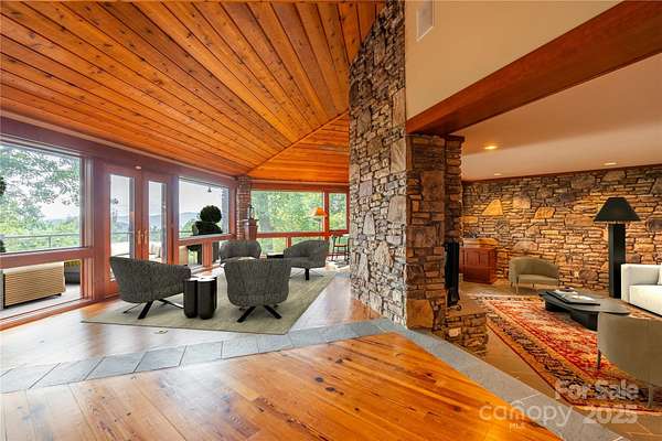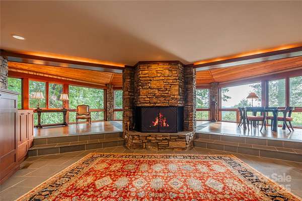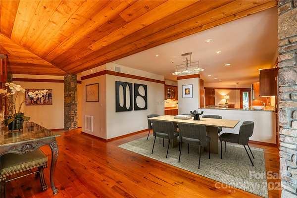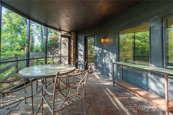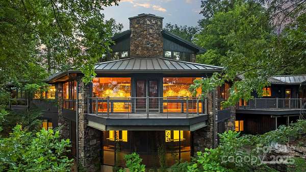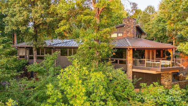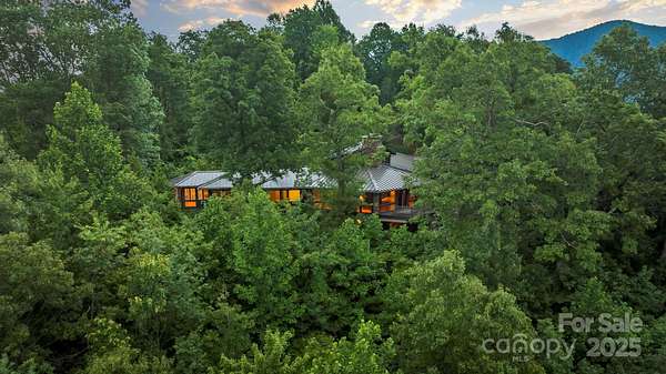 Perched atop Piney Mountain, this private estate offers breathtaking year-round mountain views, bold creeks, a waterfall, and tranquil streams. Conveniently located near Flat Rock, Tryon, Asheville, and Hendersonville, it blends seclusion with accessibility. Here the mountains are truly your playground, with waterfall hikes, canopy ziplining and Green River tubing all just minutes away! Featuring mid century modern architecture that highlight the stunning vistas. Inside, enjoy heart of pine floors, stone accent walls, and multiple deck entries from the kitchen and great room. Additional highlights include a library with a fireplace, a lower-level second kitchen, a large screened porch, and outdoor dining. 1,179 sq ft guest home has 2 bd/2 baths with impressive mountain views. Outdoors, the estate boasts gardens and trails. Set on 147.98 acres at 1,820 ft elevation, it adjoins NC game lands. Main house sleeps 8. Guest House sleeps 6. A bunk room could easily accommodate more.