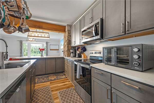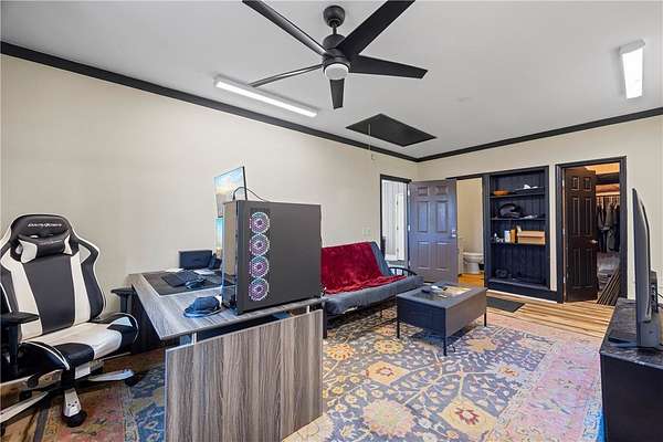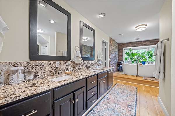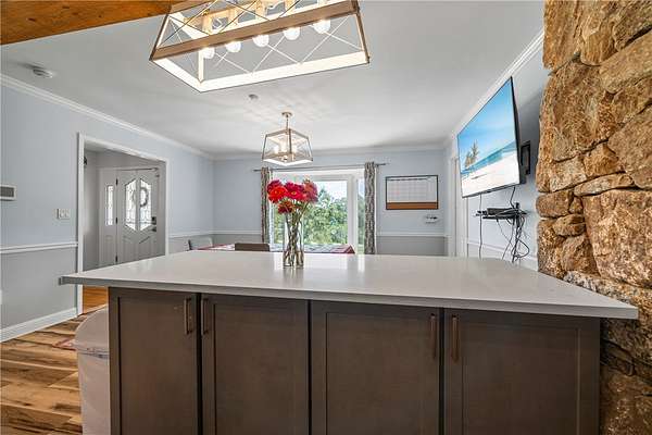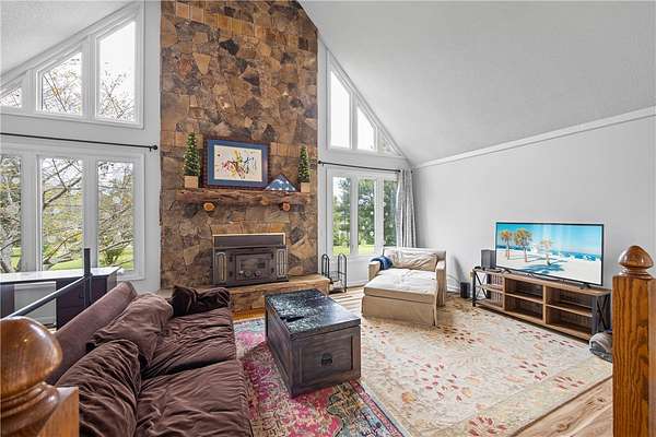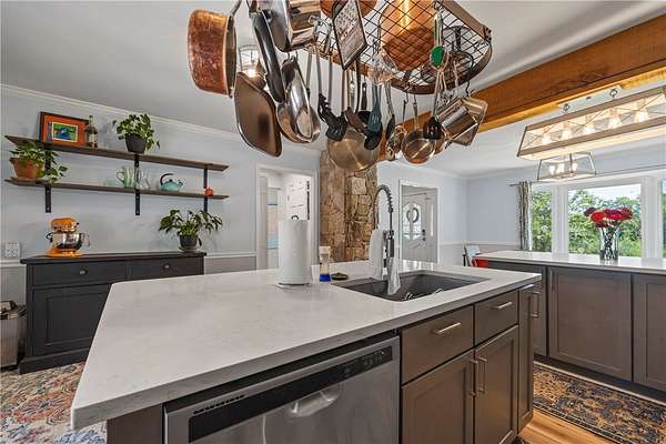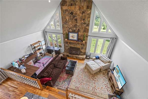 - Bath In Primary Bedroom, Breakfast Area, Cathedral Ceilings, Dual Sinks, Fireplace, High Ceilings, In Law Floorplan, Jetted Tub, Main Level Primary, Pull Down Attic Stairs, Quartz Counters, Separate Shower, Walk In Closets, Walk In Shower