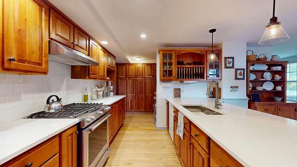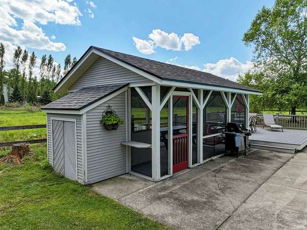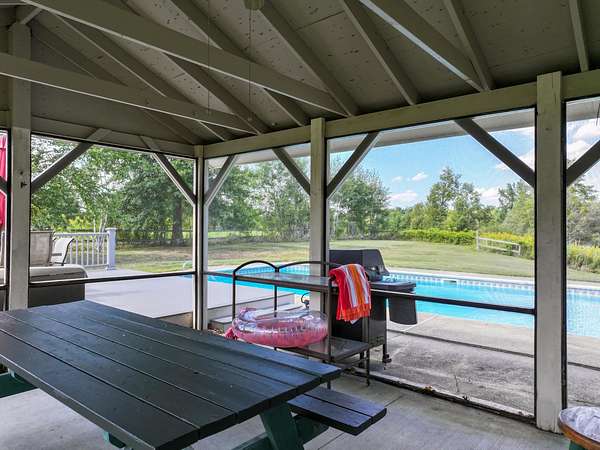 Drive into this property and immediately you will feel the love and care that has gone into this charming home and grounds. Beautiful gardens, open meadows, several outbuildings and an in ground pool with fun, screened in pool house- all add to the lovely setting. Perennials and plantings welcome you up to the front porch- a classic wraparound style- perfect for enjoying a relaxing afternoon taking in the beautiful surroundings. Once inside you will enjoy the eat in kitchen- recently renovated with custom cherry cabinetry, granite countertops and stainless appliances. Pantry or small office are tucked in behind the kitchen. A large living room area features exposed wood beams, built in cabinetry and a gas stove for cozy nights. The laundry room and a 3/4 bath are off of this space. A three season porch calls to you in the warmer months- to expand your living area, and provides access to an additional patio. A dining room allows for larger gatherings, and a first floor den could become a bedroom if that is ever needed. Wood floors flow throughout the kitchen, dining and den. Upstairs you will find three bedrooms and a full bath. Head outside and lounge at the pool, or grab a beverage in the pool house- where you can enjoy snacks, beverages, and poolside fun! The outbuildings provide storage, room for animals or workshop space. This is the quintessential Vermont homestead! Located just a few minutes from Lake Dunmore, and 15 minutes to downtown Middlebury. What a spot!
