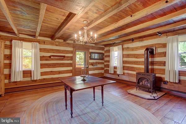 Discover a one-of-a-kind trout fisherman's paradise in Adams County, Pennsylvania ... just miles from Michaux State Forest, the Appalachian Trail, and historic Gettysburg! This charming 1880s two-story log home offers 1,770 square feet of character and comfort with 4 bedrooms and 1.5 bathrooms. Relax on the inviting covered front porch or the side wrap-around porch overlooking the tranquil setting. Step inside to experience the original log construction showcased in the 20x16 great room/log room, featuring lath and log walls, exposed beam ceilings, a propane wood stove, and wide-plank wood floors. The remodeled country kitchen blends rustic charm with modern updates, and wood floors are hidden beneath the carpeting throughout much of the home. The property includes replacement tilt-in windows, oil hot-water baseboard heat, and generous attic and basement storage. Outside, a collection of outbuildings offers endless possibilities ... workshop, garden shed, chicken coop, wood shed, or art studio. The highlight is the fabulous 1.5-story summer kitchen, ideal as a guesthouse, playroom, or creative retreat. The expansive lawn leads to a meandering path and a once-active trout stream, creating a peaceful haven for outdoor enthusiasts. Whether you're looking for a full-time residence, a weekend getaway, or an Airbnb investment, this property invites you to relax, explore, and enjoy the serenity of nature. Come see all the possibilities this historic log home has to offer!
