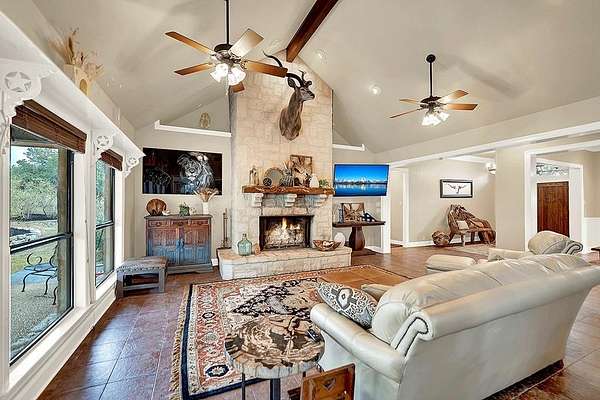Hill Country Dreaming...Searching for a few acres where you can ride your horses & your lovely home is nestled among beautiful oak trees? Dreaming of relaxing on your front porch enjoying the serenity of your cascading water feature & the Texas sky, all just minutes from Boerne & the conveniences of SA? Then this property just might be your dream come true! The lovely single-story home features 4 bedrooms & 3 baths. The spacious Living Room boasts tall ceilings & a beautiful wood-burning fireplace. Large windows throughout the home allow an abundance of natural light & the beauty of the outdoors in. The kitchen is open & inviting. The formal Dining Room has French Doors that open to country views. There is a covered arena ready for your fun & enjoyment. The Foreman's Quarters has a full bath, alongside a Tack Room & Storeroom. You also have a grand covered storage area, large enough to house your tractor, 4-wheeler & other toys. Come view this magnificent property & see if it is the dream you want to live. Info obtained from other sources & is not guaranteed. Buyer to independently verify all prior to purchase. Some photos may be digitally enhanced and/or virtually staged.