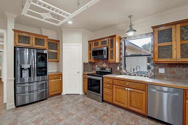- Dishwasher, Disposal, Electric Range, Electric Water Heater, Microwave, Refrigerator, Self Cleaning Oven, Two Plus Water Heaters, Water Softener Owned