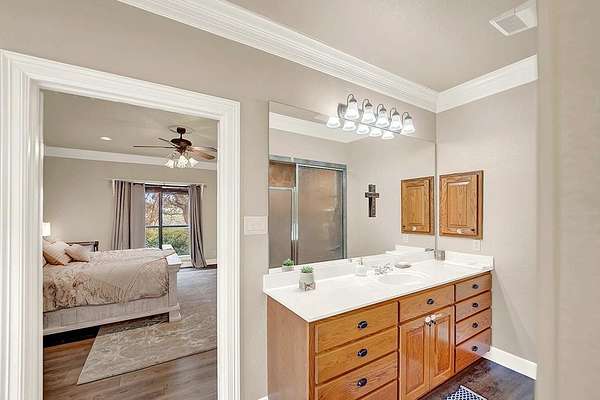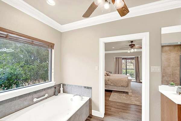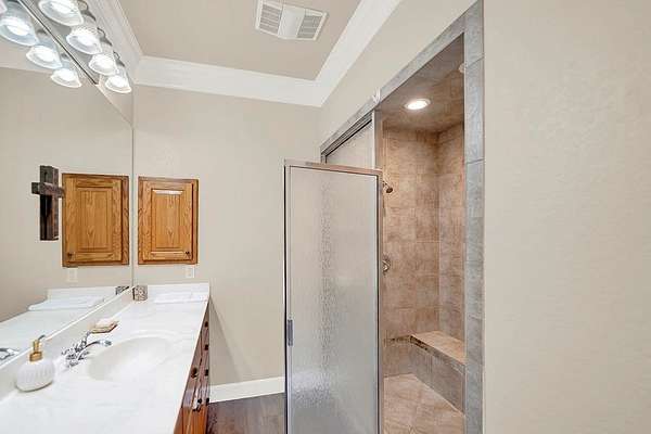 - High Ceilings, Shower Stall, Shower/Bath Combo, Walk-In Closet(s)
