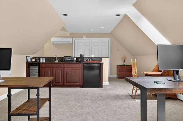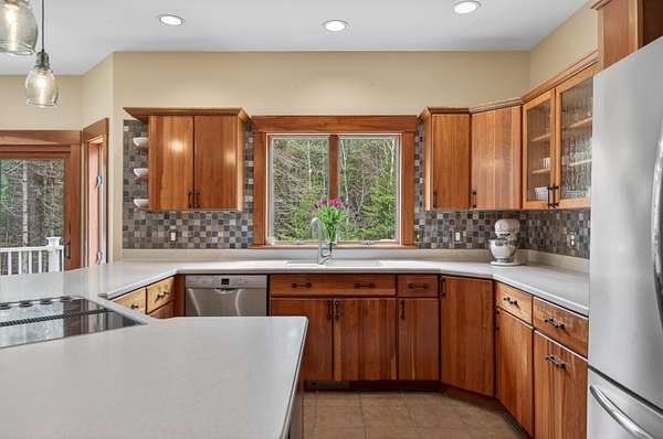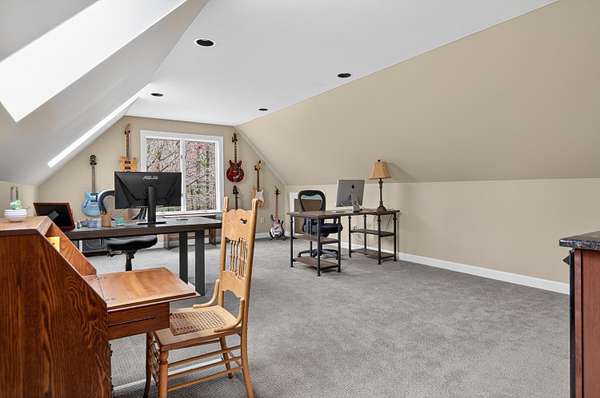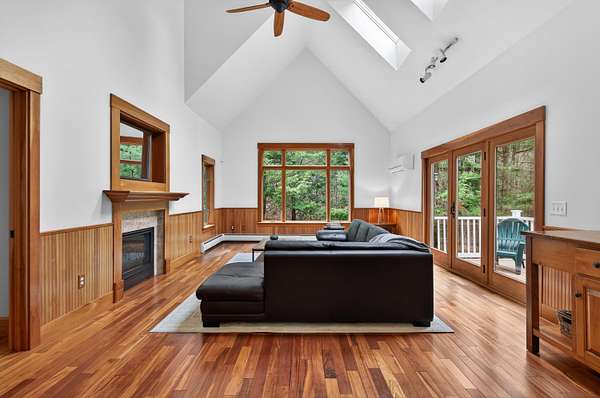 Welcome to 130 Starboard Reach in Yarmouth, Maine--an exceptional property offering privacy, comfort, and flexible living space on a beautifully wooded 2-acre cul-de-sac lot. This 4-bedroom, 3.5-bath home is thoughtfully designed for both everyday living and entertaining. The first-floor primary suite provides convenience and tranquility, while the spacious layout offers room for everyone. The living room features a stunning cathedral ceiling that fills the space with natural sunshine, creating a bright and inviting atmosphere. The oversized bonus room above the garage, complete with a mini-fridge--perfect for a home office, guest suite, or creative studio. A beautifully crafted bluestone walkway guides you to covered front porch and welcomes you through the arched front doorway. Outdoor living is equally impressive with a spacious wood deck that runs the length of the house, while the private, wooded surroundings enhance the sense of retreat. The in-ground pool is complemented by a pool house, creating the ultimate setting for summer gatherings. A fenced garden space offers the perfect spot for growing your own vegetables or flowers. Additional highlights include a walkout basement offering flexible space for recreation or storage, and a whole-house generator for added peace of mind year-round. Tucked away in a peaceful cul-de-sac yet just minutes from Yarmouth's charming village, this property combines seclusion with convenience--truly the best of both worlds.