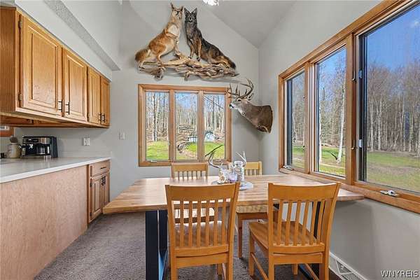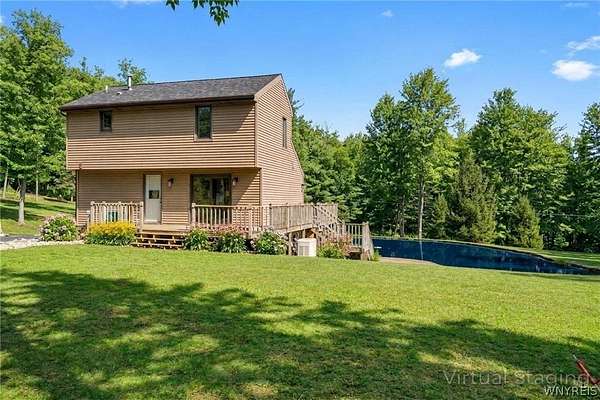 Every so often, a property comes along that encompasses and embodies the essence of what means to experience the natural beauty, tranquillity, and privacy of a home, offering not just a place to lay your hat, but a sanctuary where every moment feels like you are on a retreat. Located in seclusion with a mixture of hardwoods and pines on a two parcel, over 5 acre plot. Strategically placed in between Arcade and the historic East Aurora Village (~12 minutes). You are sure to be drawn in as you arrive upon 130 Taylor Heights, taking notice of the great exterior care and attention to detail the current owners have bestowed upon the entire property. The home was built with custom care and quality craftsmanship. Indoor and outdoor living flow seamlessly with numerous exterior points to enjoy. The wraparound deck overlooking the pond is one of the main features; enjoy in those early morning hours, or a relaxed retrieve after a long day away, or anytime in between. Truly an oasis, with tranquil surroundings will make you feel as if you are indeed where you are supposed to be- right at home! Chicken coops and animal enclosures will remain with the property, a plus for that new buyer possibly looking for a small homestead. Inside, you will experience the main floor layout which basks in abundant natural light. Meticulous care has been given throughout. Upstairs are the sleeping quarters, with an open loft with a live edge overlook. There is room to add a third bedroom if desired in the daylight- walkout basement from the garage. Newer utilities, roof (one year), and a full home generator are sure to make you feel the security you deserve. Showings commence at the Open House scheduled for Wednesday, April 15th from 5-7pm. Open Houses will follow with on Saturday, the 18th (11-1) and Sunday, the 19th (11-1). Sellers are taking offers with potential negotiating, as they are received. Come see, breath and taste the essence of what it is to be finally at home at 130 Taylor Heights.
