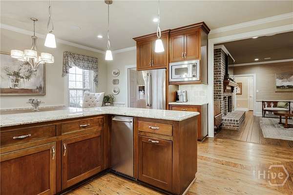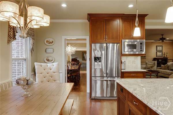 - Attic, Breakfast Area, Built-In Features, Double Vanity, Entrance Foyer, Fireplace, Garden Tub/Roman Tub, Gourmet Kitchen, High Ceilings, Kitchen Island, Main Level Primary, Pantry, Primary Suite, Recessed Lighting, Separate Shower