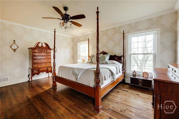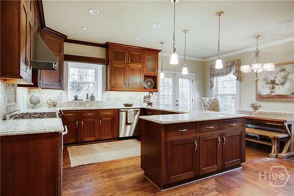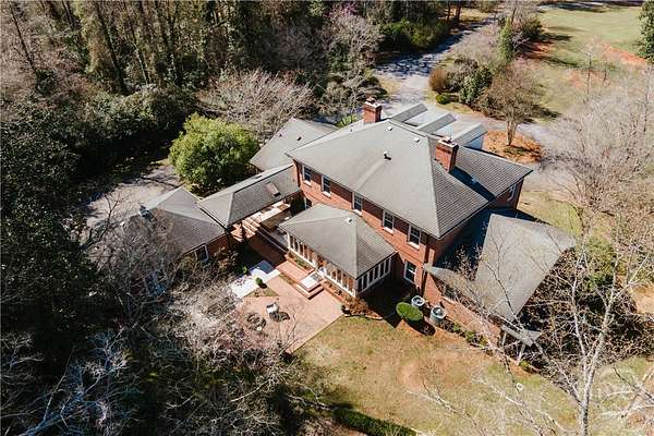 4.6-acre Athens estate - Detached guest apartment - Minutes to Five Points, UGA, Trader Joe's, and Timothy Road shopping Classic brick Georgian on 4.6 acres at the end of Wexford Place, a quiet cul-de-sac off the Timothy Road corridor. Built in 1972 and extensively renovated in 2016, the home combines traditional architecture with updated systems and finishes. The main level offers approximately 5,000 sq ft including formal living and dining rooms, a paneled study, sunroom, spacious kitchen, family room, and primary suite. Tall ceilings, hardwood floors, detailed millwork, and large windows provide natural light throughout. The upper level follows a classic Georgian layout with four large bedrooms positioned in the corners of the home and connected by Jack-and-Jill baths. The finished terrace level adds approximately 2,000 sq ft with theater room, game room, living area, kitchen, bedroom, bath, and fireplace. A covered breezeway connects the kitchen to a detached one-bedroom apartment with full kitchen, living room, and private bath, providing flexible guest or extended-stay space. Outdoor areas include a brick patio and seating terrace off the sunroom overlooking the rolling lawn, mature trees, and wooded portions of the property. Circular drive and elevated setting provide privacy while remaining close to Athens amenities. Nearby destinations include Trader Joe's, Lowe's Home Improvement, Jittery Joe's Coffee, and Timothy Road shopping. Approximately 10 minutes to the University of Georgia campus, Five Points, and multiple Athens private schools.