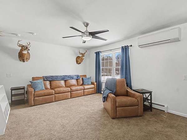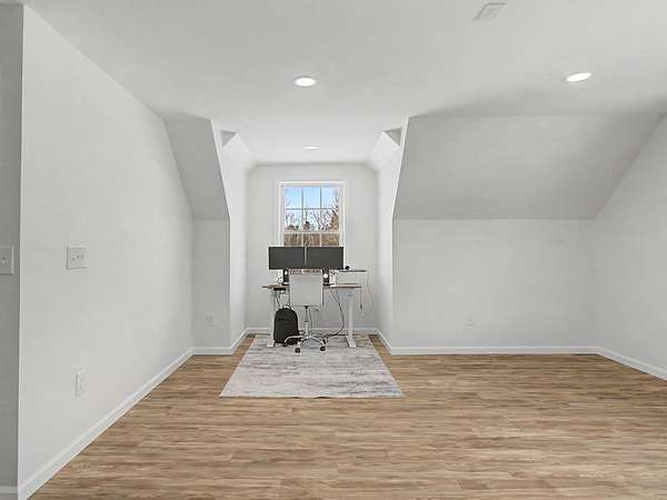 Welcome to this immaculate 2019-built Cape nestled on just over two acres of flat, open land in the heart of Georgia, Vermont. This sun-drenched home offers the perfect blend of modern efficiency and effortless main-level living. The heart of the home features a spacious kitchen with endless cabinet storage that flows seamlessly into a dedicated dining area and a large, bright living room. Designed for convenience, the first floor hosts three bedrooms and two full bathrooms, along with a functional mudroom and first-floor laundry. Upstairs, you will find a massive, finished bonus room perfect for a playroom, home office, or media hub, which already includes plumbing in place should you choose to add a third bathroom. The lower level offers an insulated basement with both interior and exterior access, currently set up with a playroom and providing incredible storage or future finishing potential. Outside, the property is beautifully maintained and features a detached, metal two-car garage. Residents of Georgia enjoy the unique benefit of high school choice and a location that is only minutes from the interstate for a quick commute to Burlington or St. Albans. This home is in pristine condition and ready for its next owners.