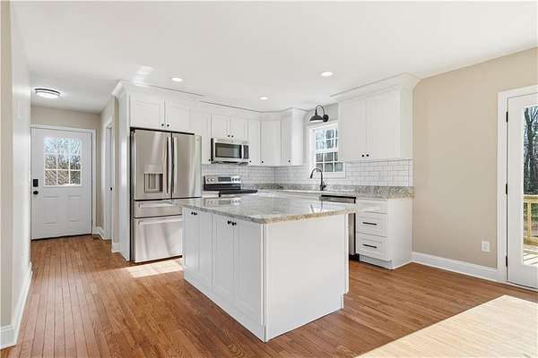 4 Bed 2.5 Bath 1.5 Acres - 2,200 sq ft finished + 1,151 unfinished sq ft basement with epoxy floors and already plumbed- making it so easily finished! This fully upgraded, move-in ready home is perfect for families or anyone seeking peaceful country living with no HOA. The main level features a spacious living room, hardwood floors, new lighting, ceiling fans, and a chef-inspired kitchen with all-new GE Profile appliances, granite countertops, custom wood cabinets, backsplash, and a large island with storage. The main-level master suite offers hardwood floors, a walk-in closet, and a luxurious bath with marble countertops and a tiled walk-in shower, plus a convenient half bath and main-level laundry with brand-new GE washer & dryer. Upstairs, enjoy three additional bedrooms, including a second master with walk-in closet and en-suite bath featuring double vanity, marble countertops, and tile floors. The basement provides 1,200 sq ft of flexible space with epoxy floors, 8-ft ceilings, and is stubbed for a full bath and bedroom, plus a 1-car garage. Additional upgrades include dual-fuel HVAC, new septic, 30- year roof, cement siding with fresh paint, county water, tiled showers throughout, and a 500- gallon owned propane tank. The flat, usable yard offers plenty of space for outdoor living and activities, all while being conveniently close to town. Enjoy the best of Ellijay living-near downtown Ellijay, orchards, wineries, sunflower fields, Amicalola Falls State Park, and more. A perfect combination of modern comfort, space, and country charm-everything is new and ready for you to move in!
